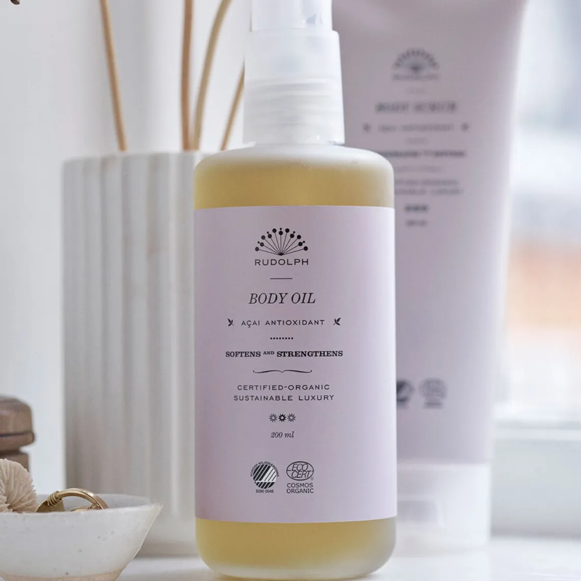De økologiske olier fra acai, mandel, jojoba og oliven er propfyldt med antioxidanter, som beskytter og styrker huden, så den bliver blød og spændstig. Acai Body Oil vandt kategorien ”Årets Kropsplejeprodukt – Luksus” ved Danish Beauty Awards 2011.