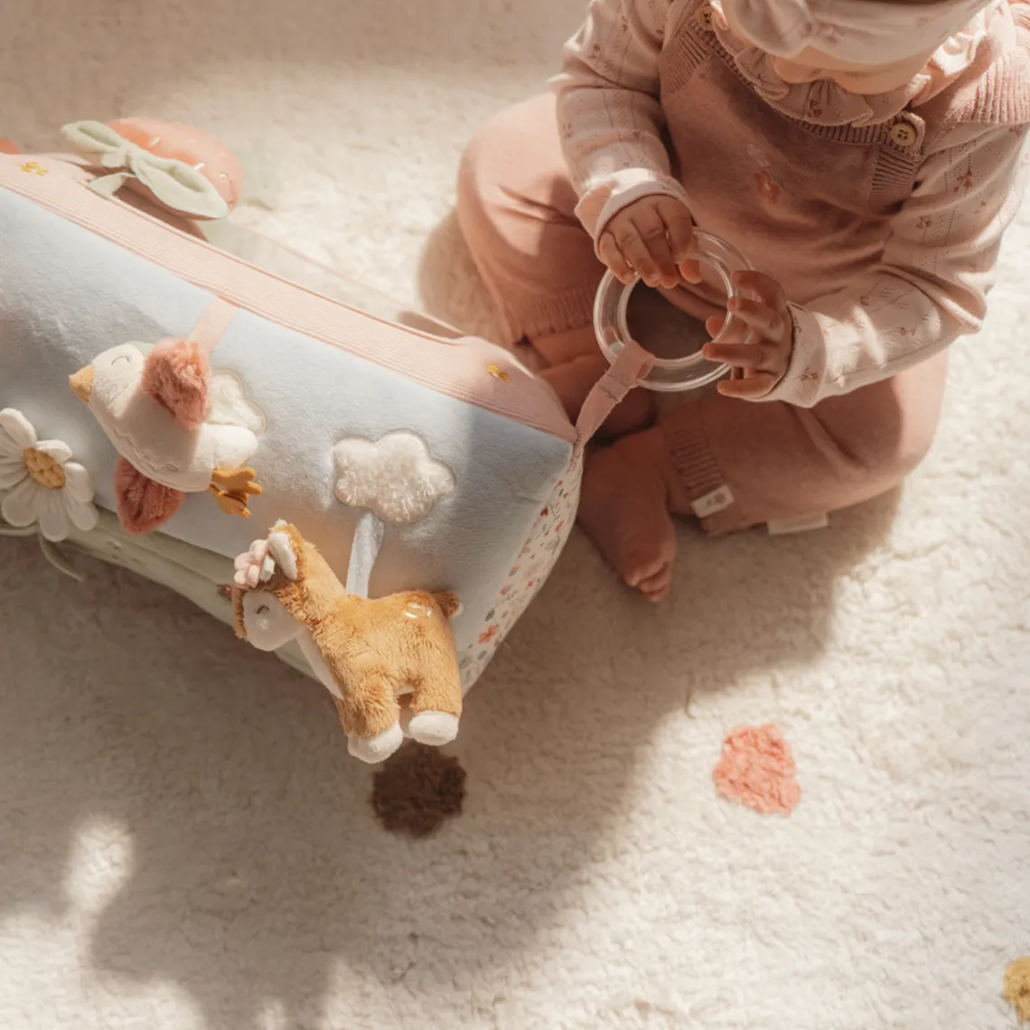 Opdag skønheden og hemmelighederne i Little Dutch Fairy Garden! Den store aktivitetstrekant er fyldt med søde og sjove aktiviteter, der kan stimulerer og aktiverer din lille. Undervejs er der så meget at udforske. Fra knitrende blomsterblade til et lille spejl til selvudforskning. Den er fyldt med legesyge funktioner og sjove teksturer og vil engagere dit barns sanser og fantasi.