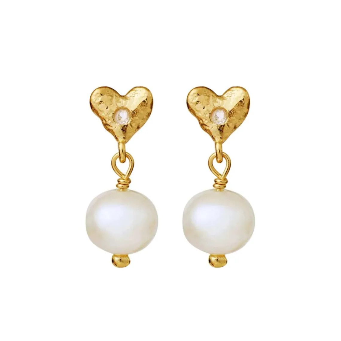 Alia øreringene er den ultimative forankring af hverdagskærlighed med sine organisk formede hjerter med regnbue månesten i deres center og en dryppende ferskvandsperle.