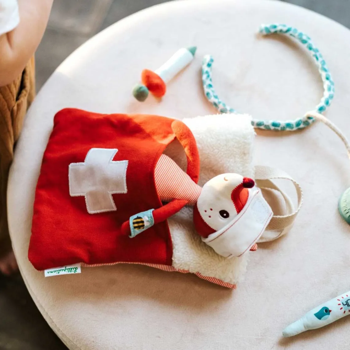 Med alt det medfølgende tilbehør er mulighederne mange. Det hele er samlet i en praktisk doktor taske fra Lilliputiens som også fungere som sygeseng..