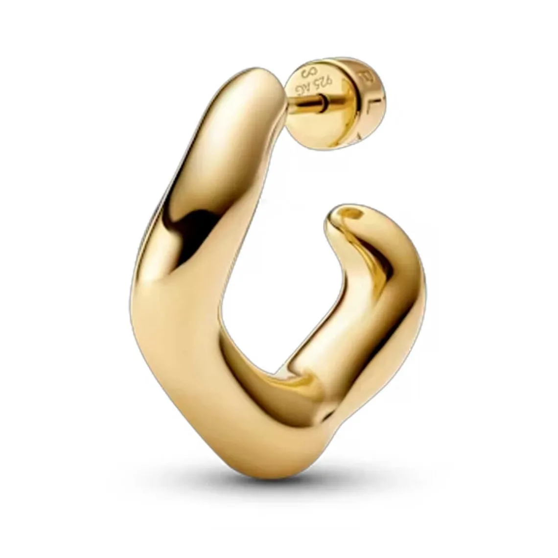 Ørering med skulpturel bølgeform og åben bagside, som giver et let og elegant udtryk. Det moderne design tilfører smuk bevægelse og gør øreringen velegnet til både hverdagsbrug og mere festlige anledninger.
