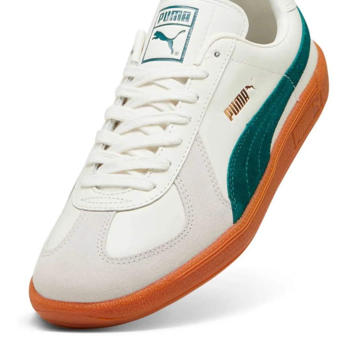 Army trainer sneakers fra Puma. Her får du et flot flotte og cool sneakers. Disse sneakers kommer i en flot farve, og er helt perfekte til foråret og sommeren. Disse sneakers kan bruges til jeans, bukser, nederdel og kjoler, da de er enkelte og samtidig flotte.
