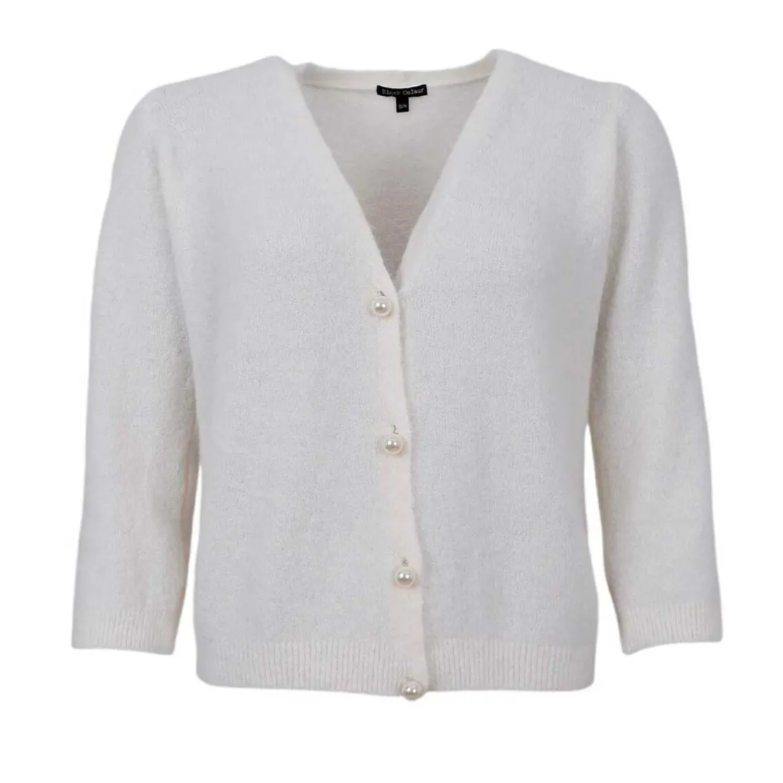 Bella pearl knit cardigan fra Black Colour. Her får du en smuk, ensfarvet cardigan. Denne cardigan er med de fineste perleknapper på fronten.