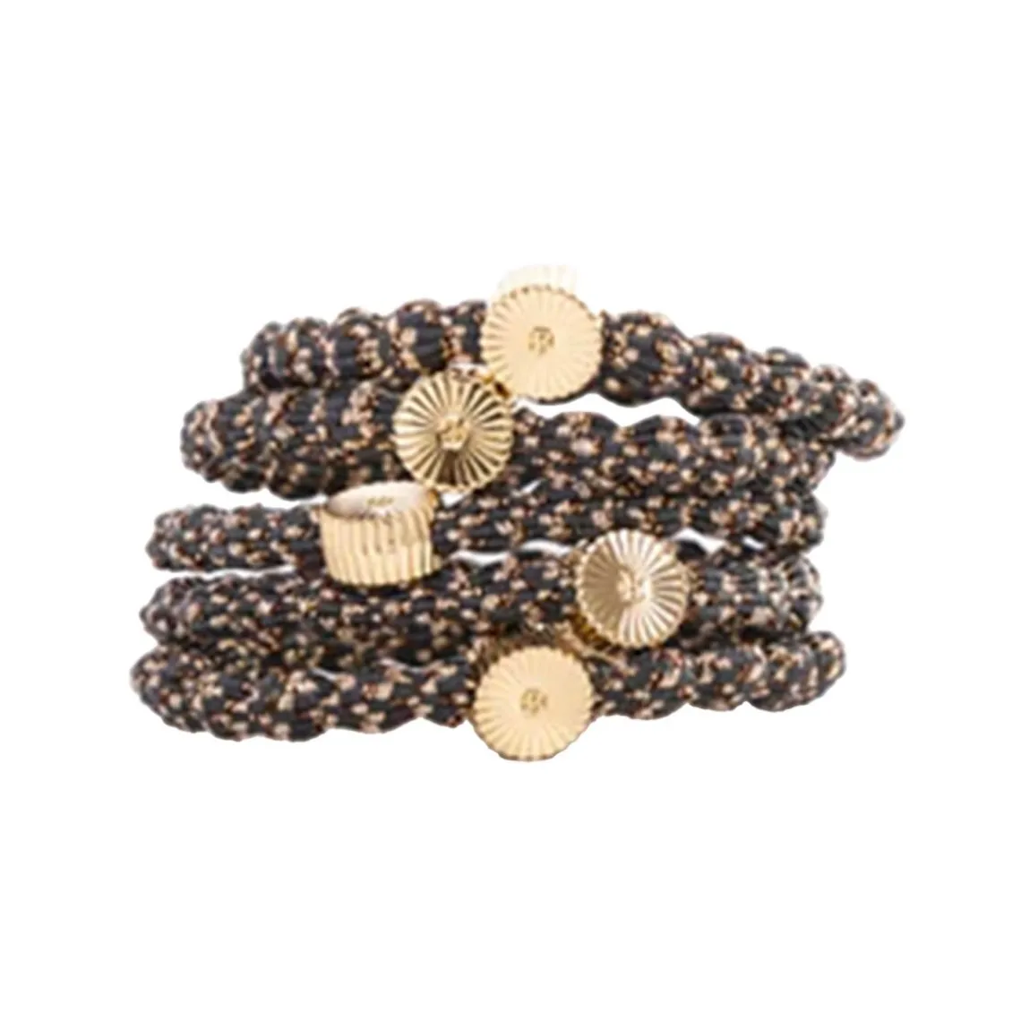 Giv plads i smykkeskrinet til ‘Breezy’-hårelastikken – din nye favorit, når et strejf af subtil elegance skal tilføjes. Den charmerende elastik kombinerer sofistikeret sort med gyldne nuancer og funklende gulddetaljer, der skaber et look, som både er tidløst og moderne. Ideel til at løfte hverdagsoutfittet eller tilføje det sidste touch til aftenkjolen.