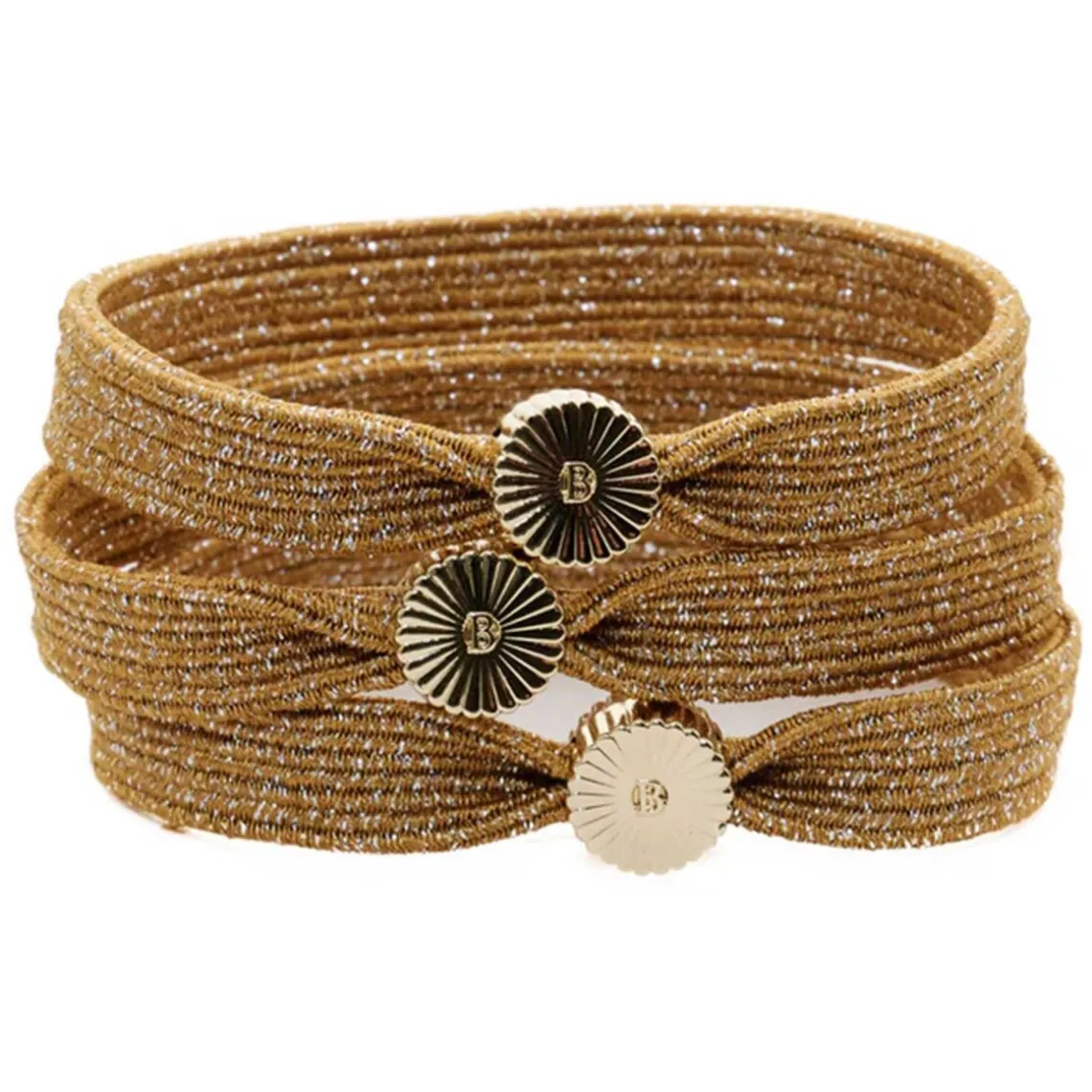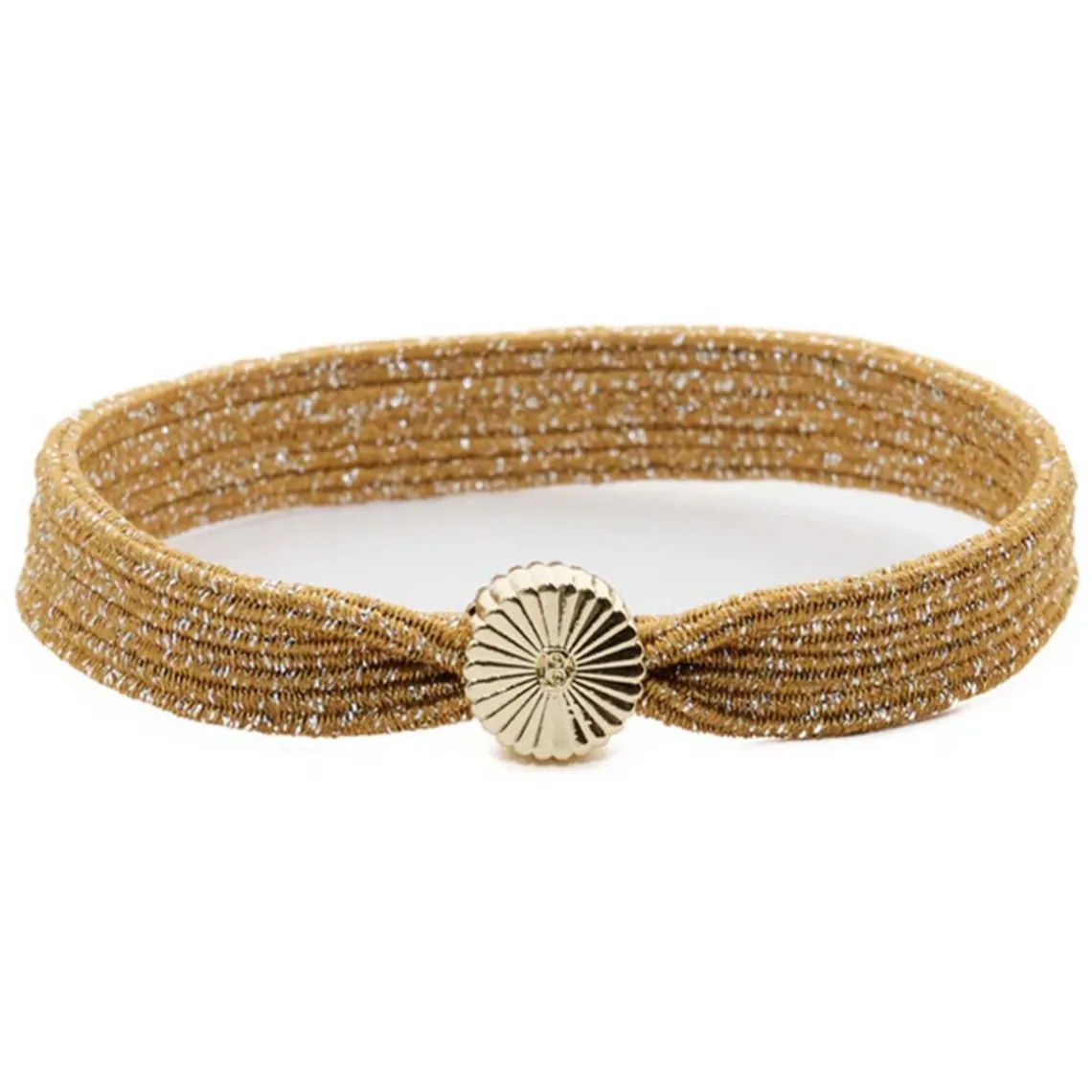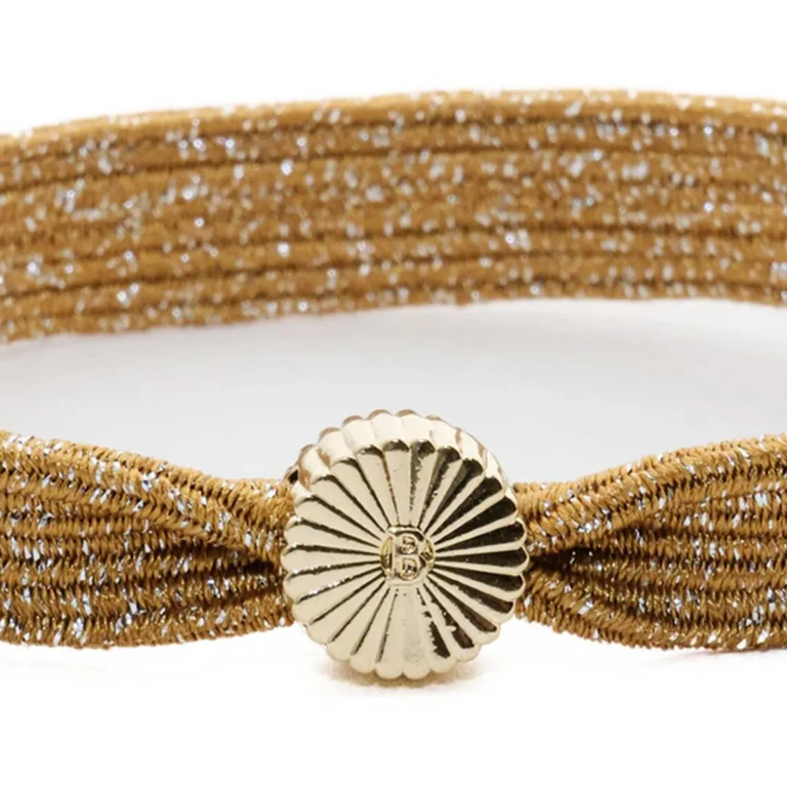 ‘Sunrise’ hårelastikken indfanger de første solstrålers varme og glød. De gyldne bånd skaber et subtilt, magisk skær, der tilføjer glamour til enhver frisure. Skånsom mod håret og samtidig dekorativ, fungerer den både som praktisk elastik og som et luksuriøst statement-piece, der løfter dit look med et strejf af morgenguld.