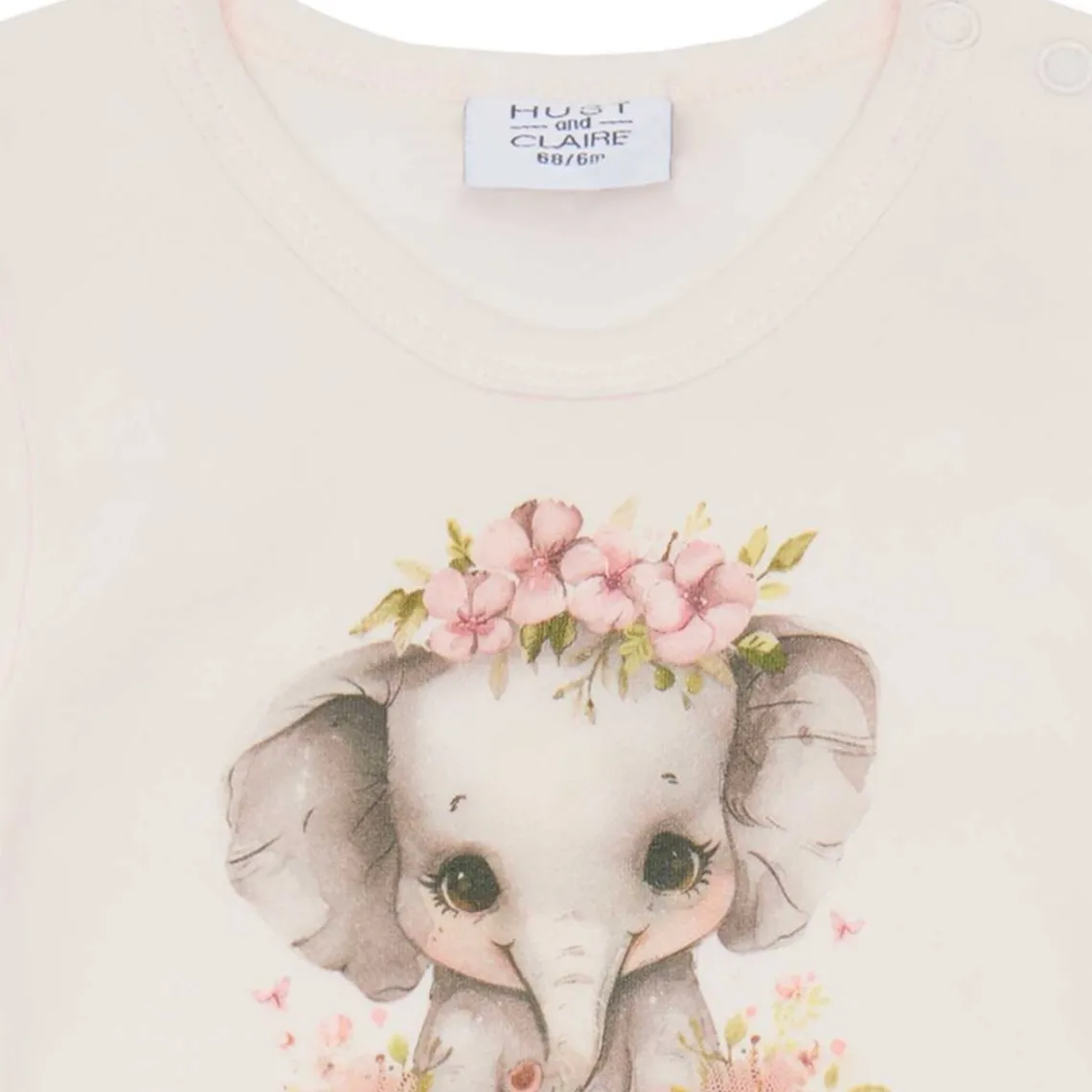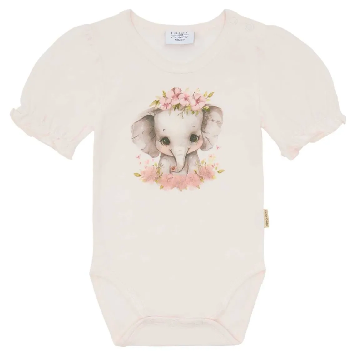 Britt bodystocking fra Hust and Claire. Her får du en kortærmet bodystocking, som kommer i en lækker bomuldskvalitet. Bodystockingen er med rynker på skuldrene og med elastik ved ærmerne. På fronten er et smukt elefantmotiv.