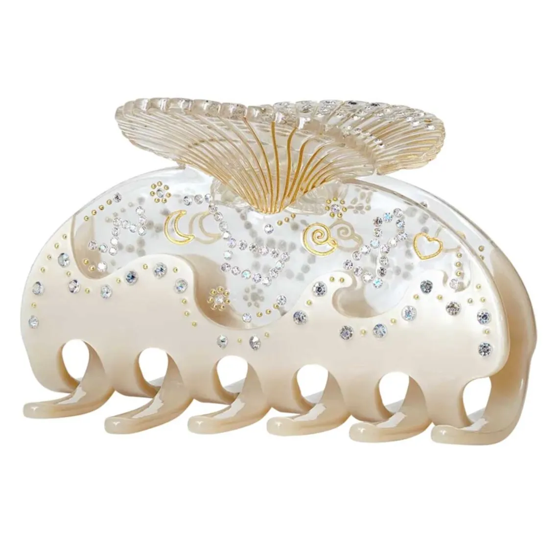 Materialer: Acetate, jern med miljøvenlig electro-belægning, rhinsten