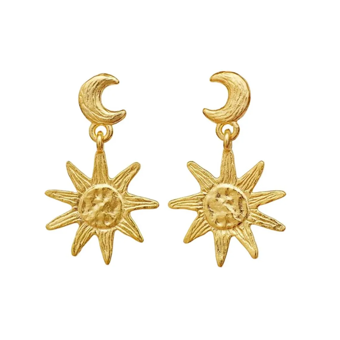 Cyra øreringe fra Maanesten. Med disse øreringe vil du skinne med fornyet energi og være i harmonisk balance som solen og månens skiftende rejse mellem nat og dag.
