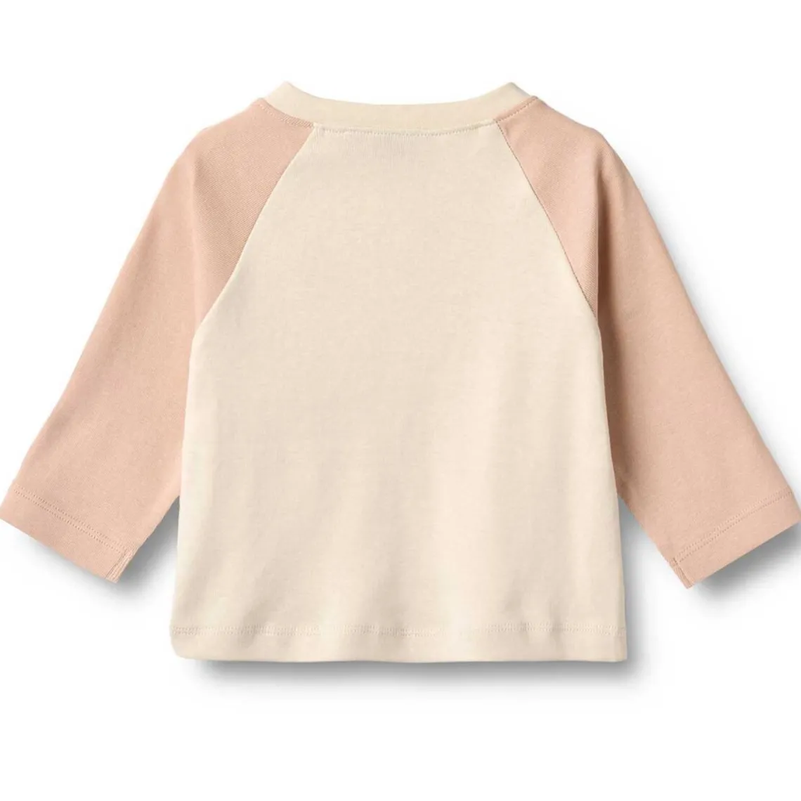 Langærmet T-shirt til baby i blødt, økologisk bomuld med et flot frontprint. T-shirten har en løs pasform og raglanærmer i kontrastfarve for et moderne look. Trykknapper på den ene skulder gør det nemt at klæde barnet på og af, samtidig med at komforten bevares. Materiale: 100% økologisk bomuld