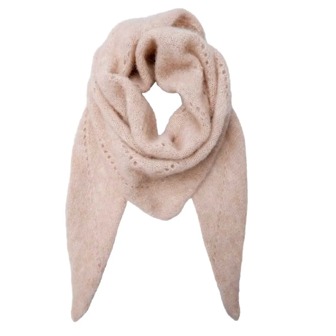 Dell strikket mini tørklæde fra Black Colour. Her får du et fint lille trekantet tørklæde, som kommer med det fineste hulmønster. Dette tørklæde er dejligt blødt, og behageligt at have på.