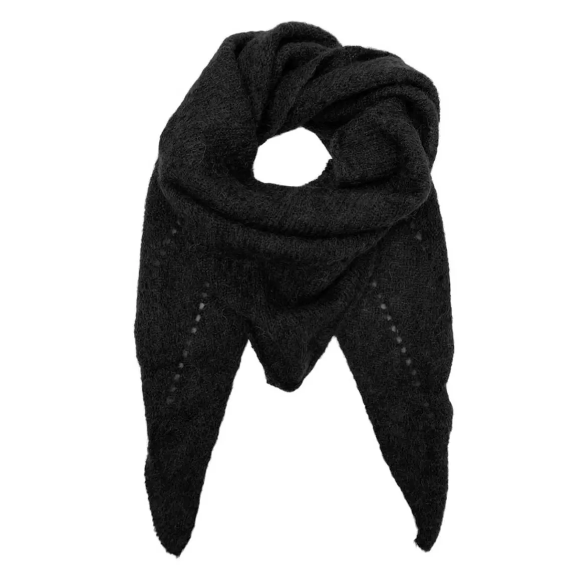 Her får du et fint lille trekantet tørklæde, som kommer med det fineste hulmønster.
