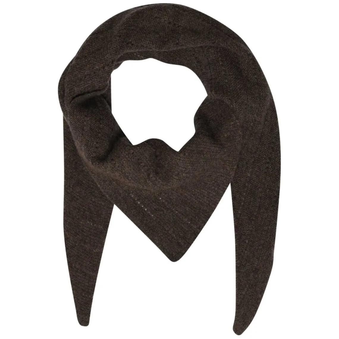 Tørklædet har på tværs af den trekantformede silhuet et feminint hulmønster, som påfører tørklædet en fin detalje.