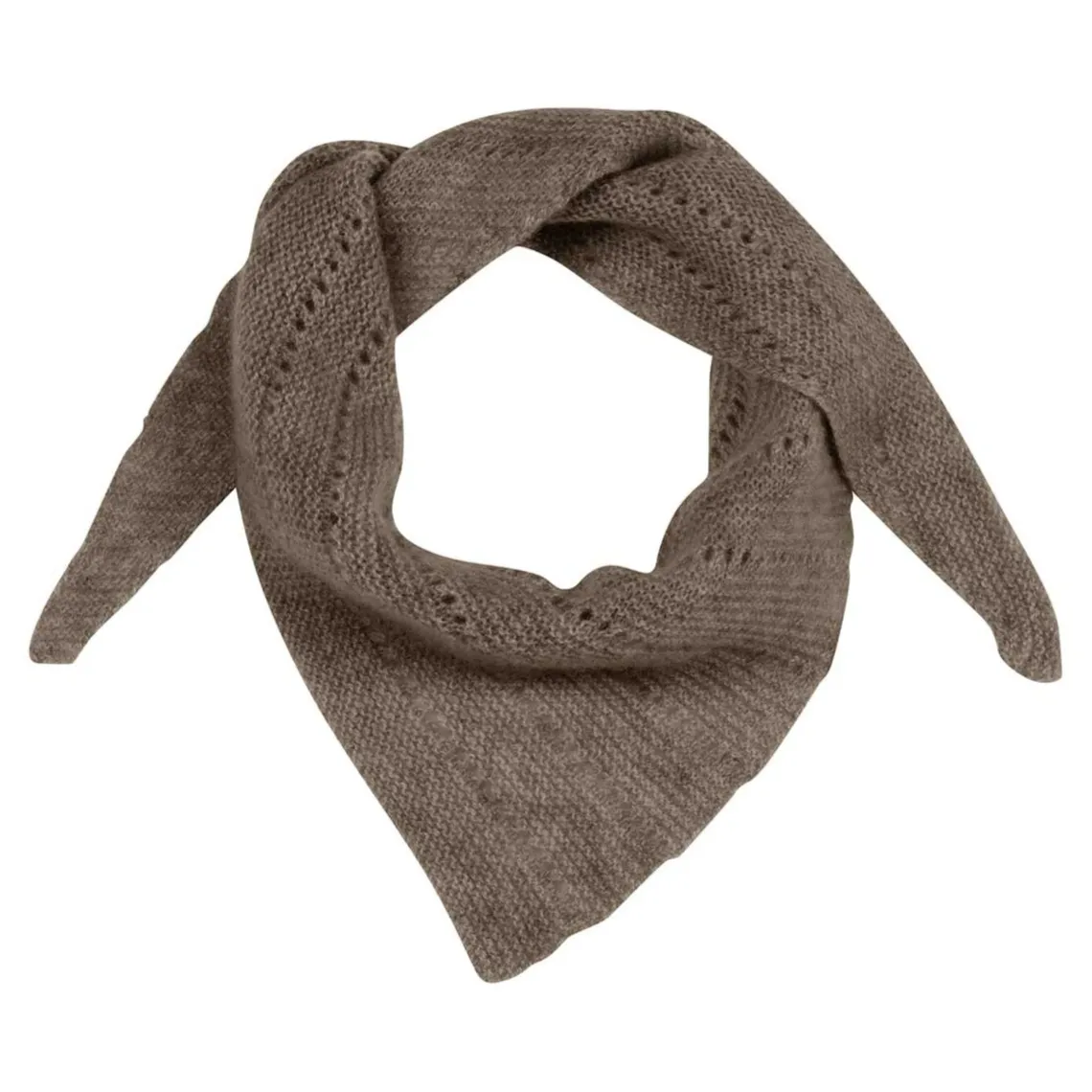 Tørklædet har på tværs af den trekantformede silhuet et feminint hulmønster, som påfører tørklædet en fin detalje.