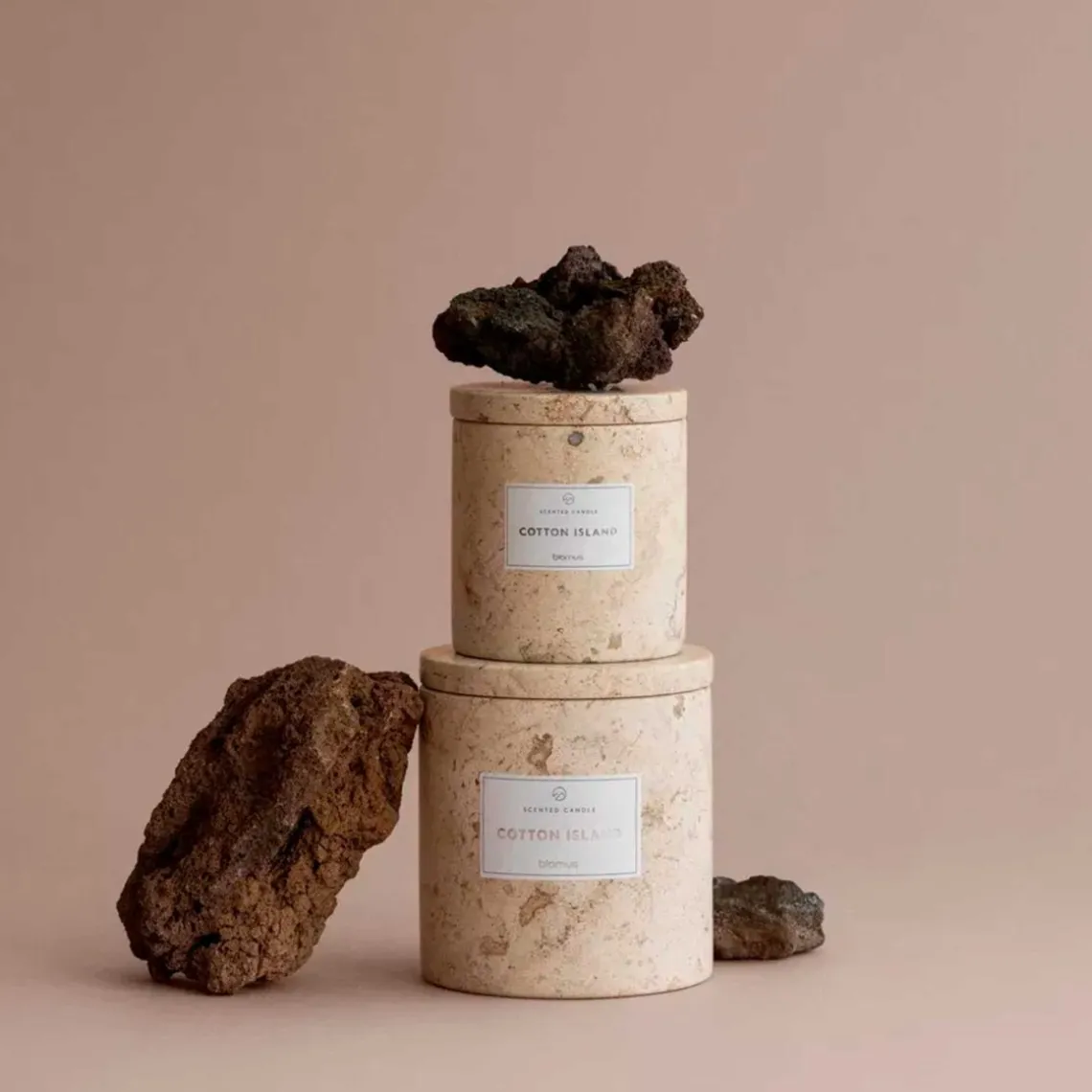 De nye FRABLI duftlys erstatter den tidligere FRABLE-serie og udvider kollektionen med genopfyldelige lys i aluminiumsbeholdere. Når lyset er brændt ud, kan de smukt matte beholdere i marmor eller travertin genbruges som stilfulde opbevaringskrukker. Lysene er fremstillet af sojavoks og beriget med nøje udvalgte duftkompositioner, der giver en subtil, langvarig og ren duftoplevelse. De indeholder ingen palmeolie, soder minimalt og er et miljøvenligt valg. Duft: Cotton Island