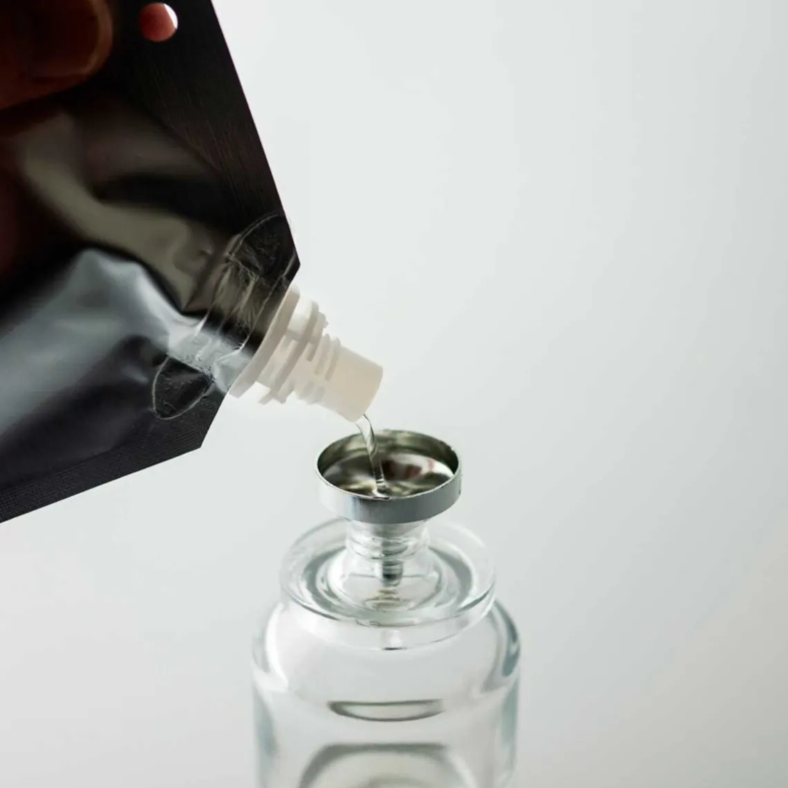 Sæt en tragt i flaskens åbning og hæld forsigtigt parfumen i.