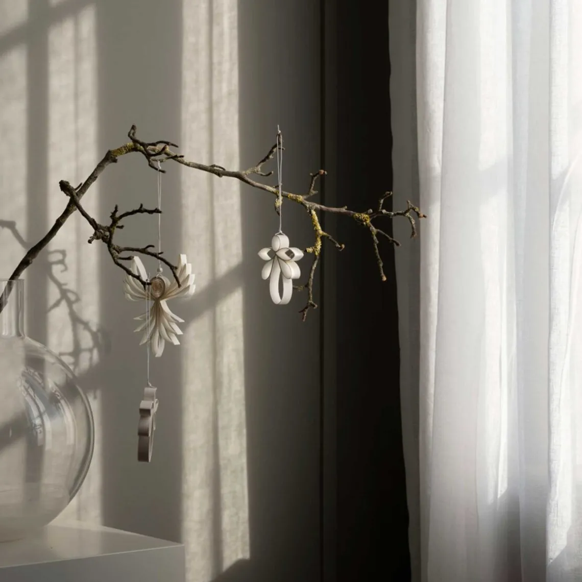 Engla er et sæt med tre smukke og sarte engle, håndlavet i hvidt papir. De elegante figurer passer perfekt som pynt på juletræet, i vinduet eller som en fin detalje i en festlig borddækning. Hver engel er omhyggeligt fremstillet og udstråler ro, lys og enkel julestemning. Leveres i en hvid æske, som både egner sig som gaveæske og til sikker opbevaring, når englene ikke er i brug. Materiale: Papir