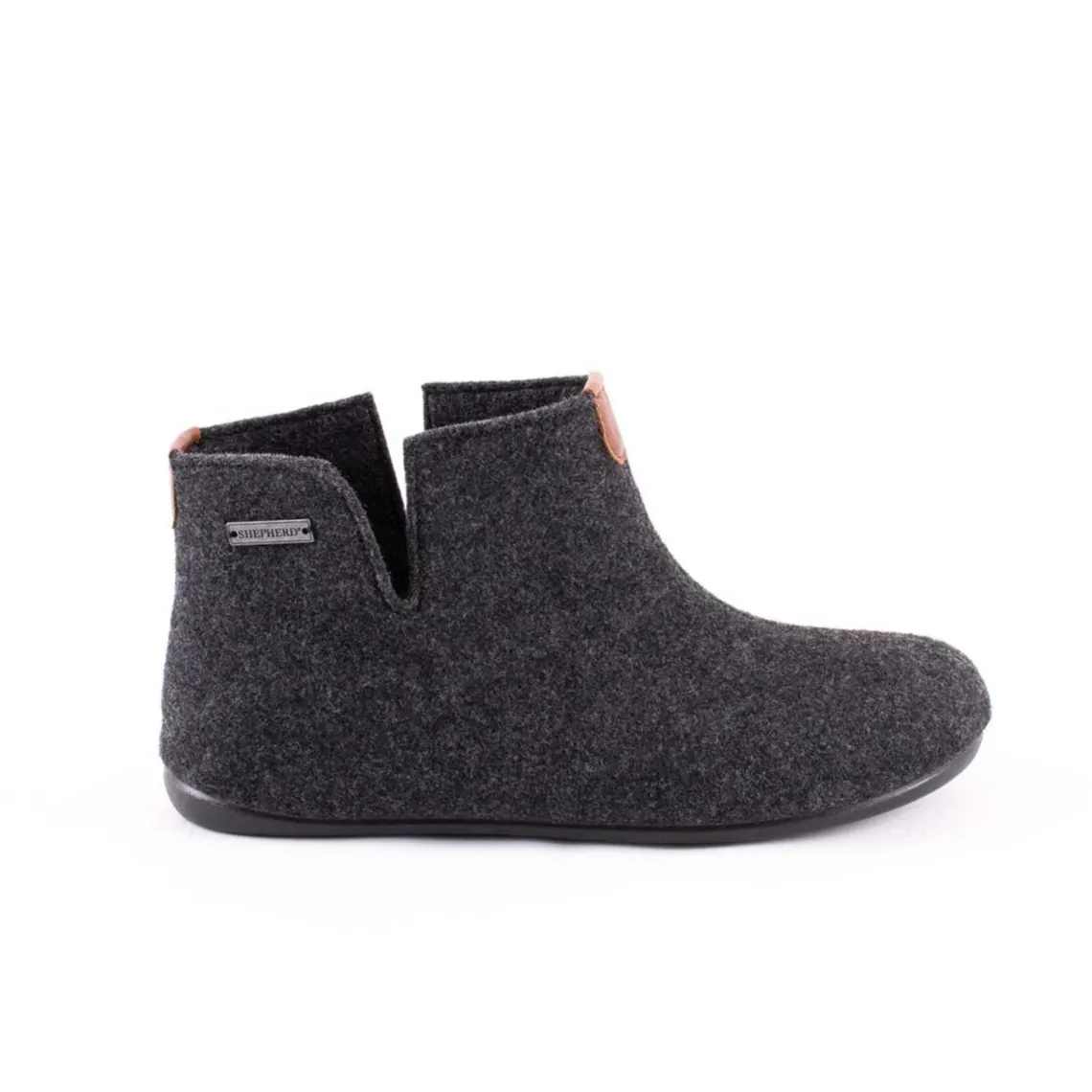 Hjemmeskoene er udformet i en ankelhøj model med en slids i siderne.