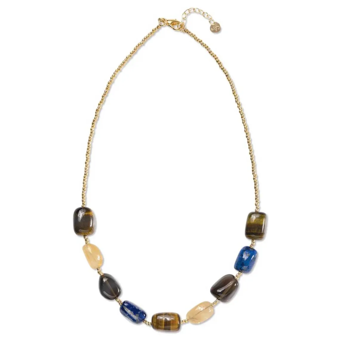 EXCESSIVE HALSKÆDE TIGER EYE LAPIS LAZULI SMOKEY QUARTZ CITRINE NECKLACE