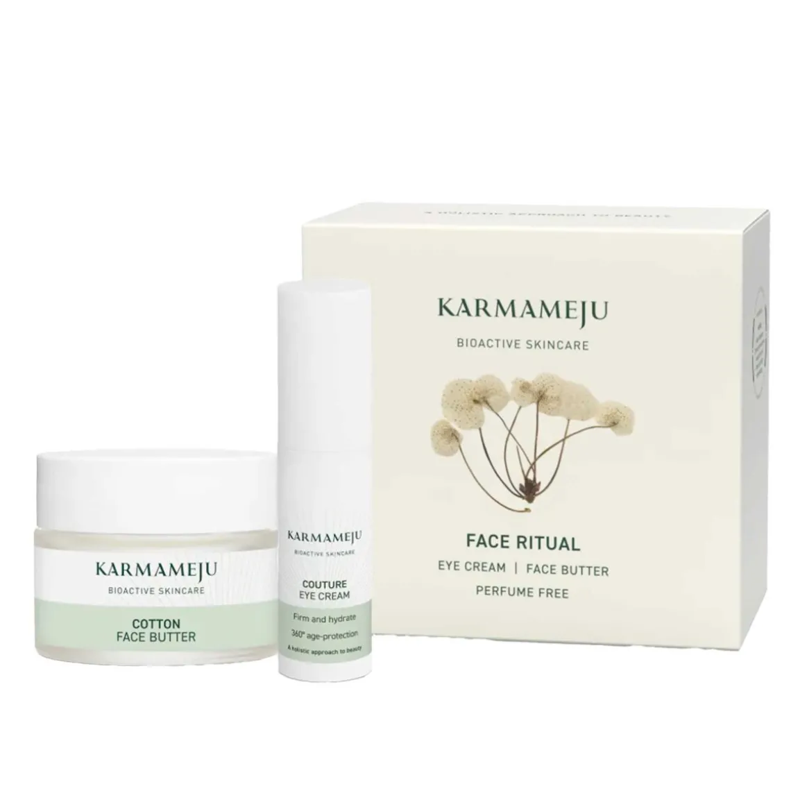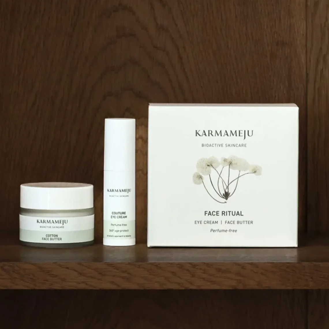 – COUTURE Eye Cream, 15 ml – En effektiv øjencreme med naturlige, klinisk dokumenterede ingredienser, der synligt reducerer mørke rande, hævelser og fine linjer. De økologiske planteekstrakter og det reflekterende “filler-kompleks” opstrammer og lysner det sarte øjenområde, så huden fremstår frisk og revitaliseret. – COTTON Face Butter, 50 ml – En regenererende og dybt fugtgivende ansigtscreme med klinisk dokumenteret ectoin og beta-glucan, der styrker, udglatter og stimulerer kollagenproduktionen. Den nærende formel med hyaluronsyre, C-vitaminrig granatæble og balancerende planteolier genopretter hudens elasticitet og beskytter mod ydre stressfaktorer. Dermatologisk testet til sensitiv hud.