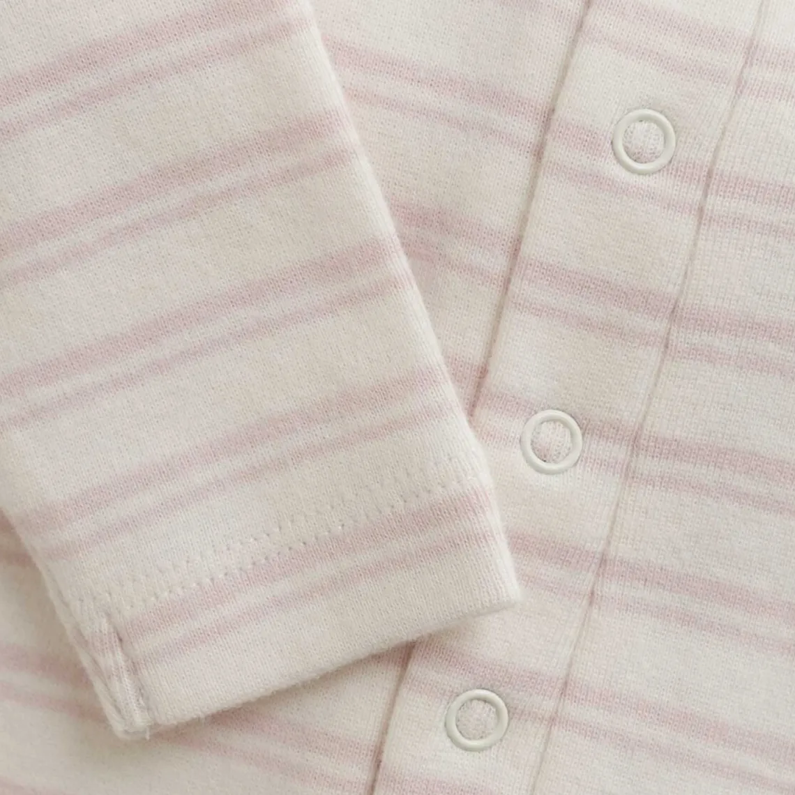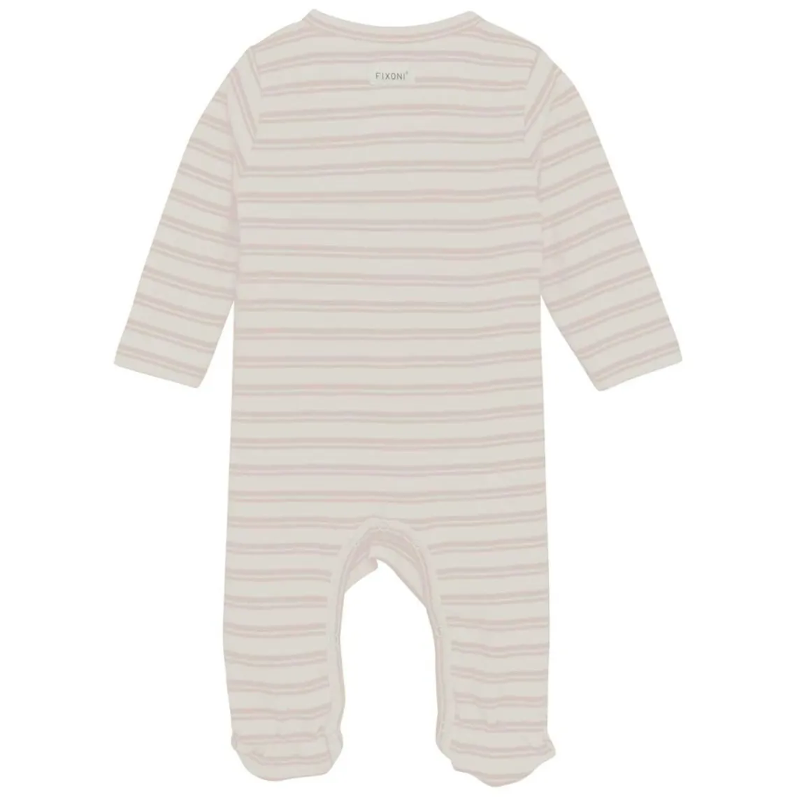 Heldragt/sparkedragt med fødder fra FIXONIi all-over-print med striber lavet i bomuld, som er behagelig at have på.