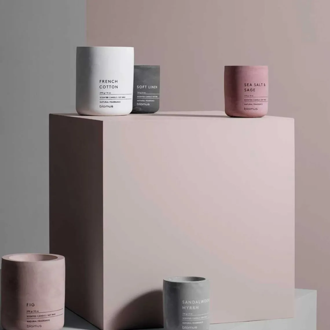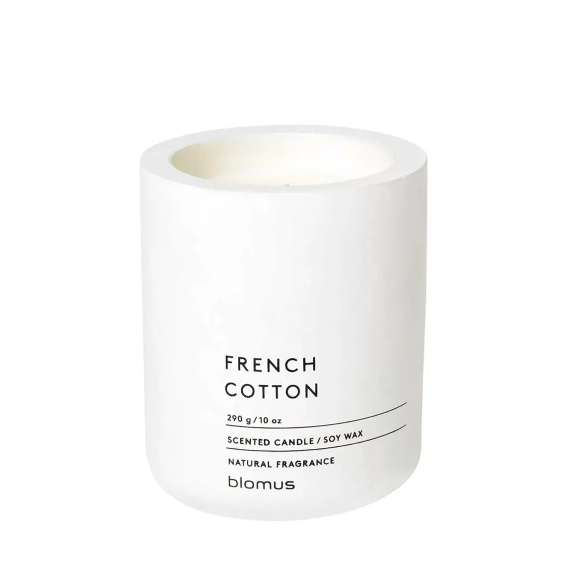 Fraga duftlys large – French Cotton fra Blomus. Dette duftlys dufter ikke kun lækkert, men er også super smukt. Dette duftlys er lavet af sojavoks, og har derfor en lang brændetid, det indeholder ingen skadelige stoffer og afgiver næsten ingen røg.