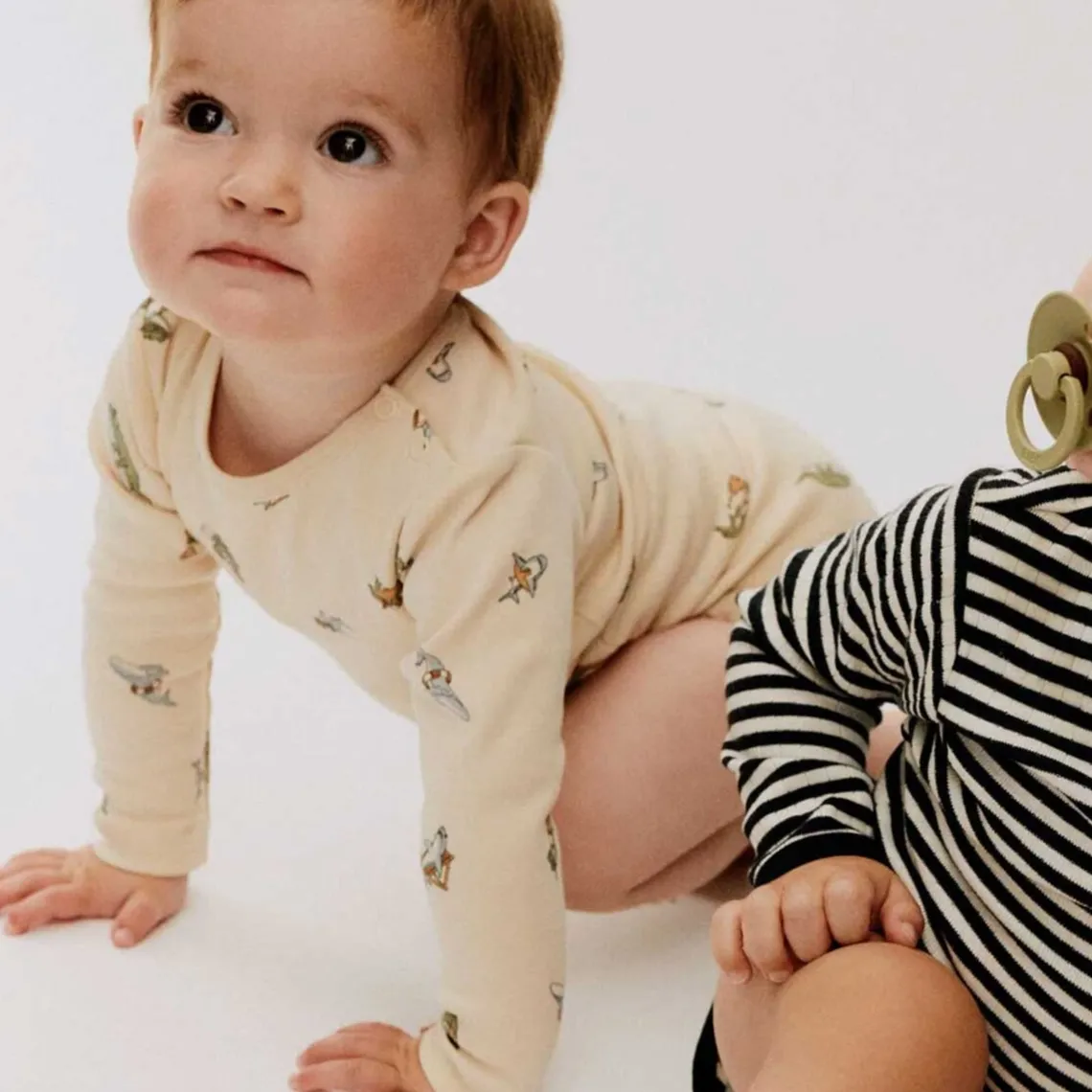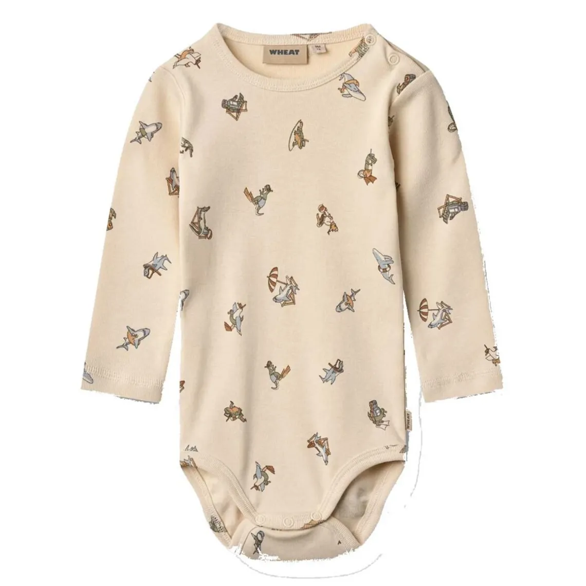 – Wheat signaturprint Wheats basis body er en sand klassiker i garderoben, når det kommer til småbørn. Denne body har trykknapper på den ene skulder samt i bunden for bedre komfort, når du skal klæde dit barn på. Brug bodyen som den inderste del i ethvert outfit, da den er blød at have tæt på huden Materiale