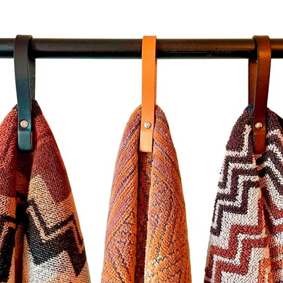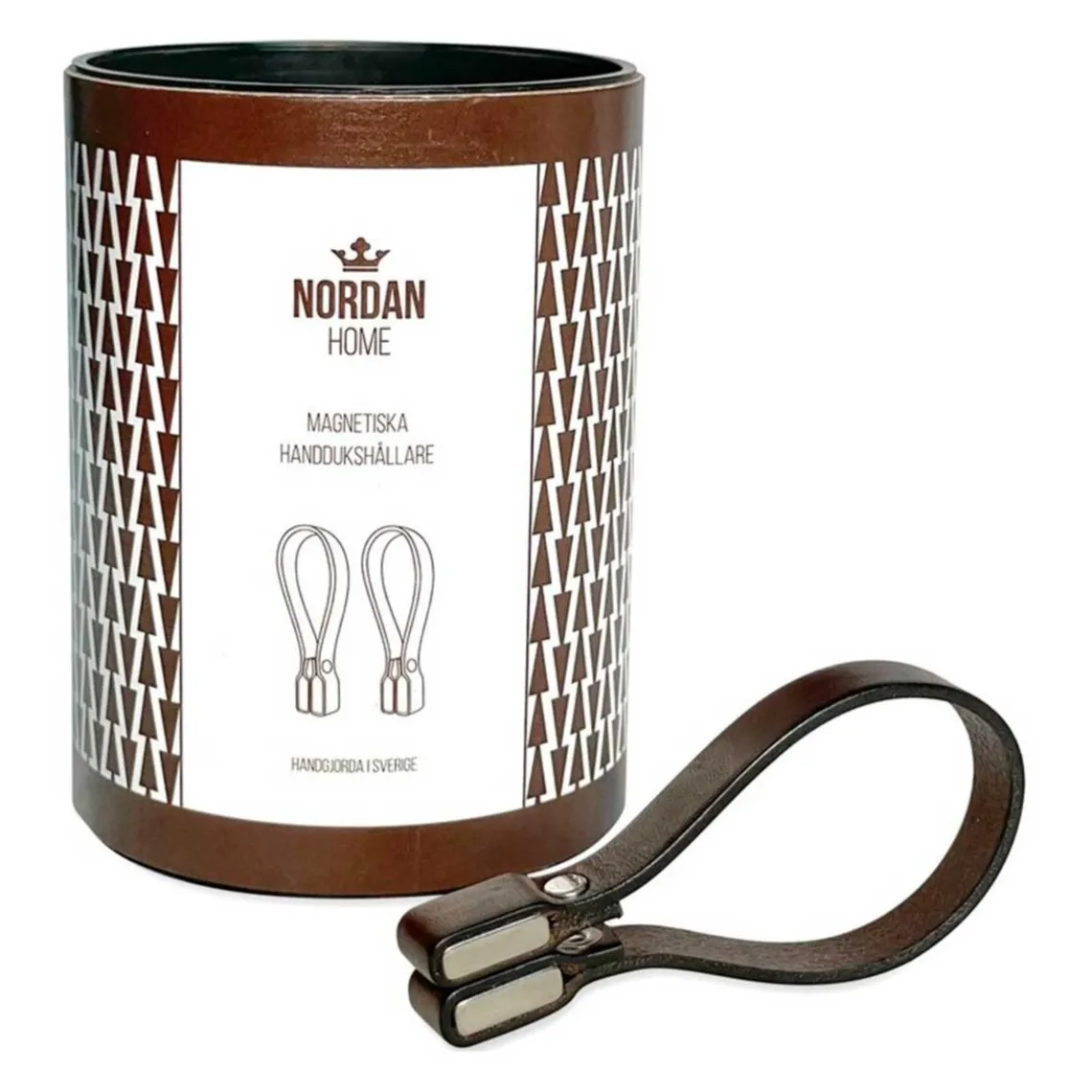 Håndklædestropper med magnet fra Nordan Home. Stilfulde og funktionelle brune læderstropper, passer perfekt ind på ethvert badeværelse. Stropperne monteres ved hjælp af to kraftige magneter så håndklæderne ikke bliver beskadiget.