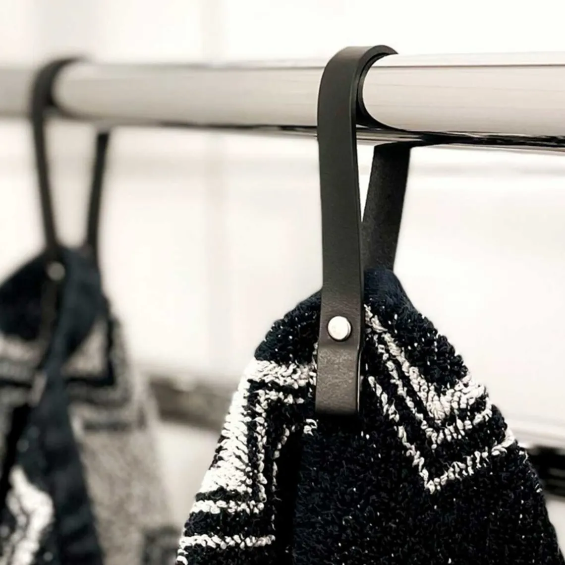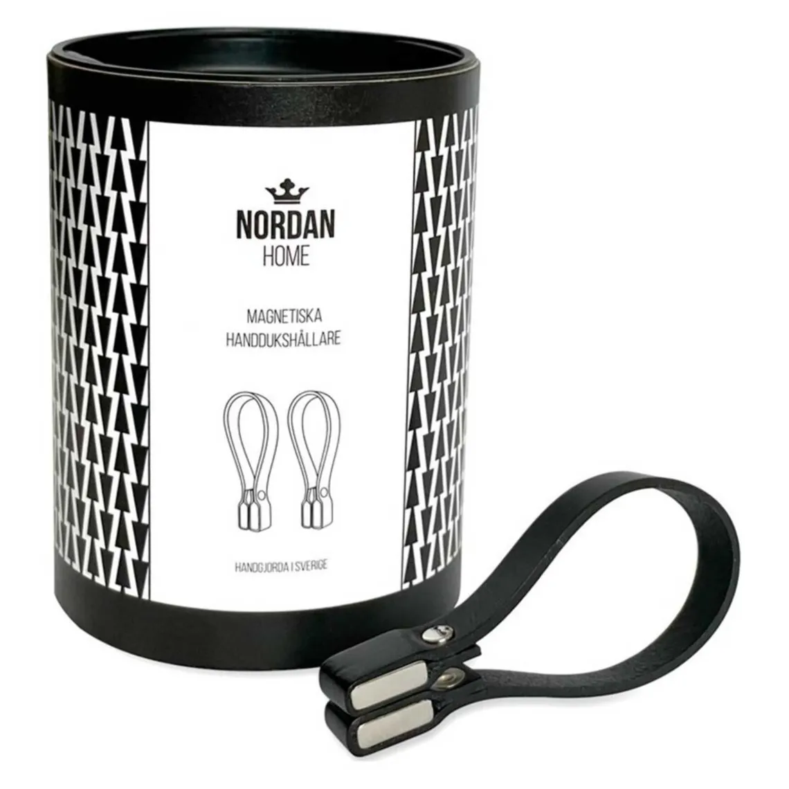 Håndklædestropper med magnet fra Nordan Home. Stilfulde og funktionelle sorte læderstropper, passer perfekt ind på ethvert badeværelse. Stropperne monteres ved hjælp af to kraftige magneter så håndklæderne ikke bliver beskadiget.