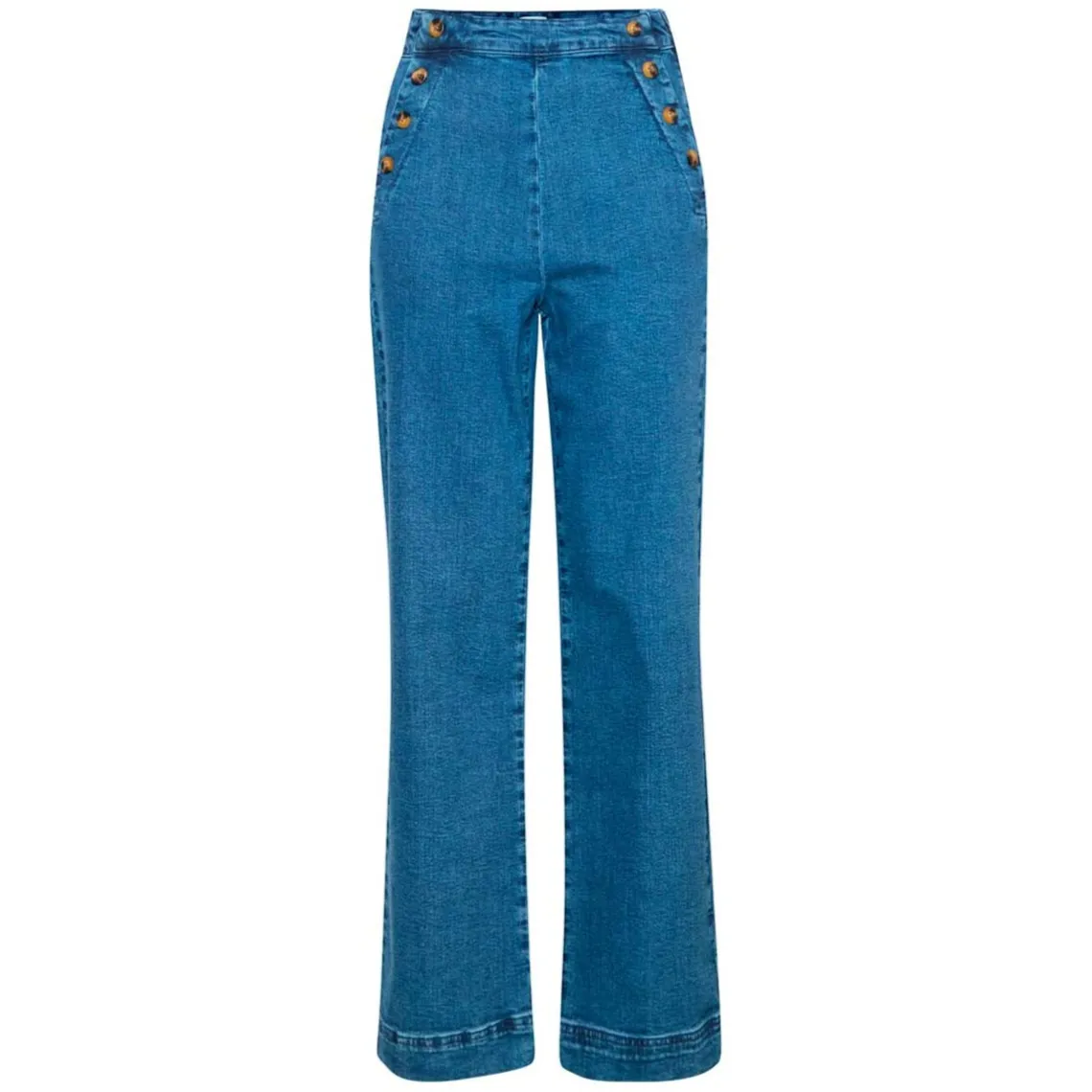 Harper bukser fra Atelier Reve. Her får du et par flotte, denim bukser. Disse bukser er med lommer i siden, som er pyntet med smukke knapper. Bukserne er behagelige at have på.