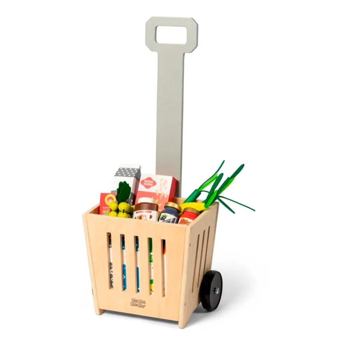 Indkøbskurv på hjul fra Mamamemo. Her får du en super smart indkøbskurv på hjul, som er helt perfekt til legen som købmand. Denne skønne indkøbskurv har plads til alle de varer, der nu engang skal handles.