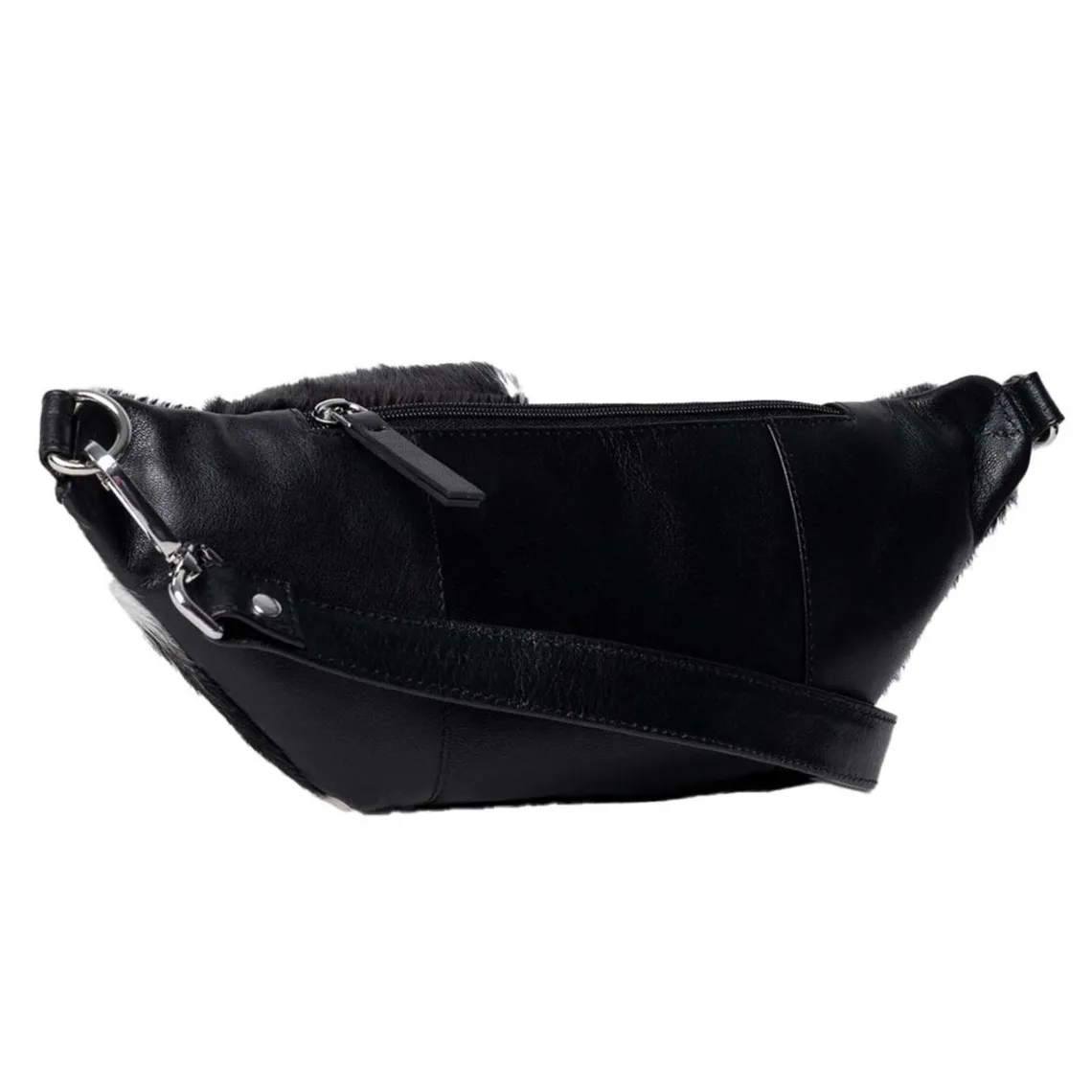 Deres trendy Jia bumbag med ko-print kombinerer stil og funktionalitet i ét. Tasken har et rummeligt hovedrum med lynlåslukning, der giver nem adgang til dine vigtigste ting, samt en diskret lynlåslomme på bagsiden til de mindre genstande. Indvendigt finder du desuden en lille lynlåslomme, så du nemt kan holde styr på dine ejendele. Perfekt til både hverdag, rejser og byture – holder dine ting sikre og lige ved hånden. Mål: H16 x B35 x D7 cm