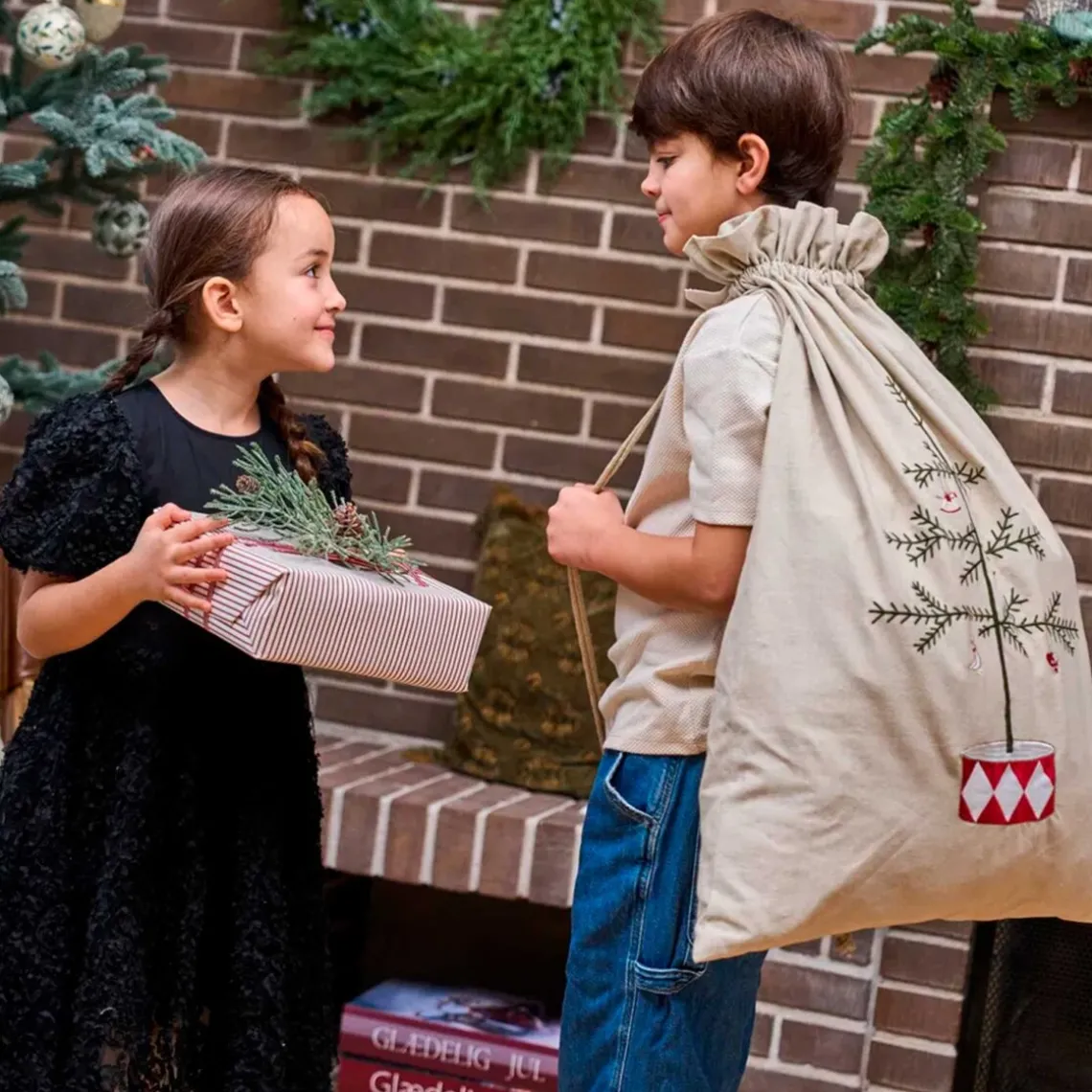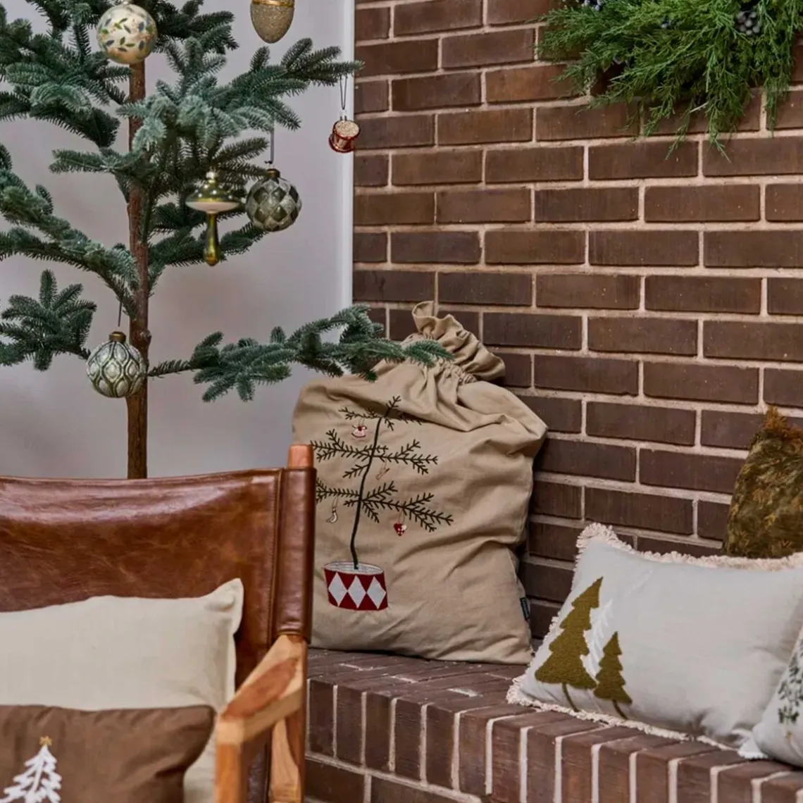 Julesækken er lavet i blødt bomuld og dekoreret med fine broderede julemotiver, hvilket giver et klassisk og hyggeligt look. Perfekt til opbevaring af julegaver eller som dekorativ detalje under juletræet, der skaber ekstra julestemning i hjemmet. Materiale: 100% bomuld