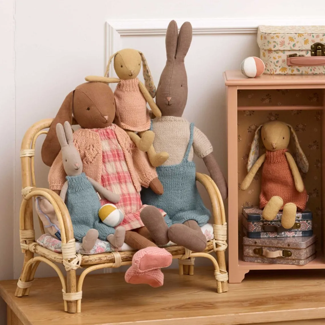 En klassisk kanin fremstillet i naturligt stof, der giver et blødt og tidløst udtryk. Den er både skøn at kramme og fin at se på, hvilket gør den til en charmerende del af ethvert miniatureunivers.