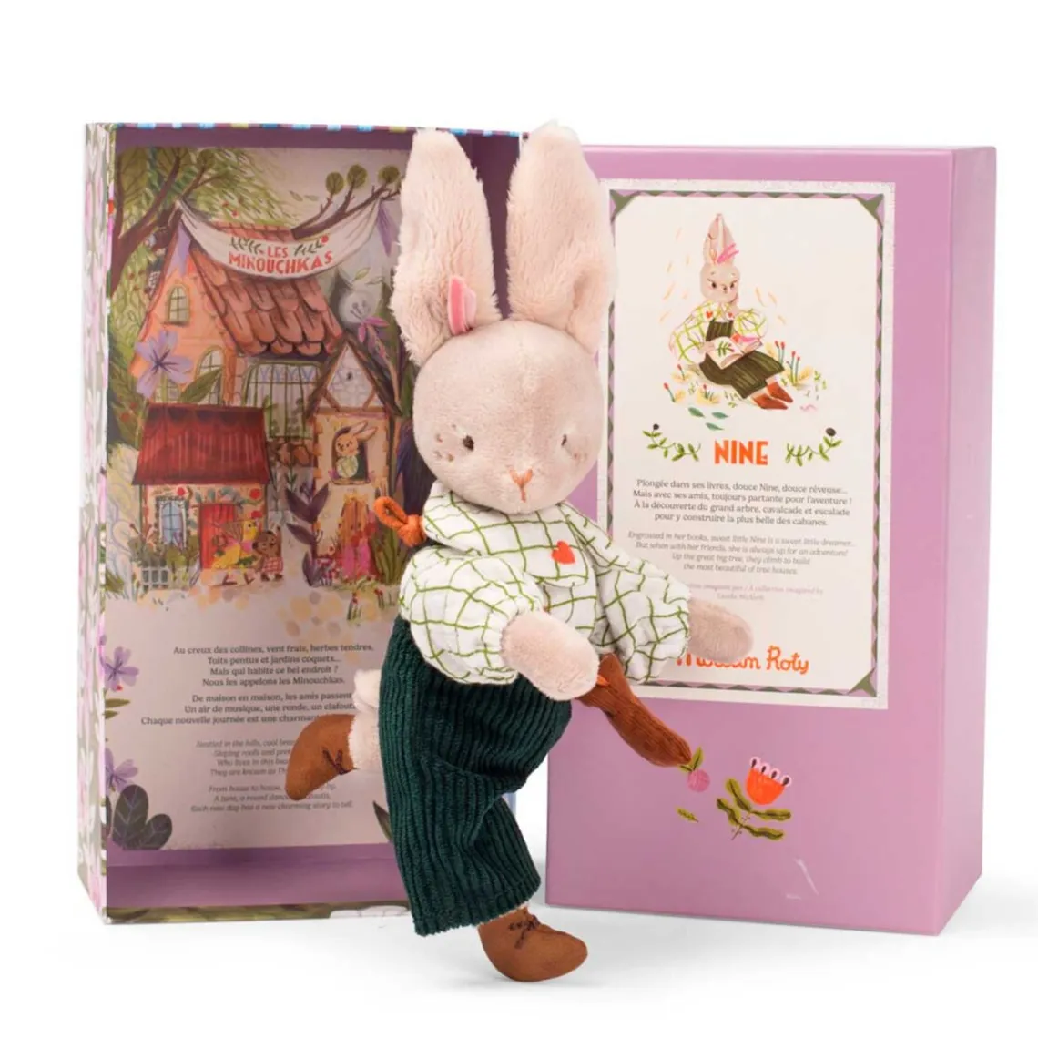 Nine elsker bøger og at bygge træhytter! Designet af Lucille Michieli. Vaskeanvisning: Kan maskinvaskes ved 30°C uldprogram. Tåler IKKE tørretumbler