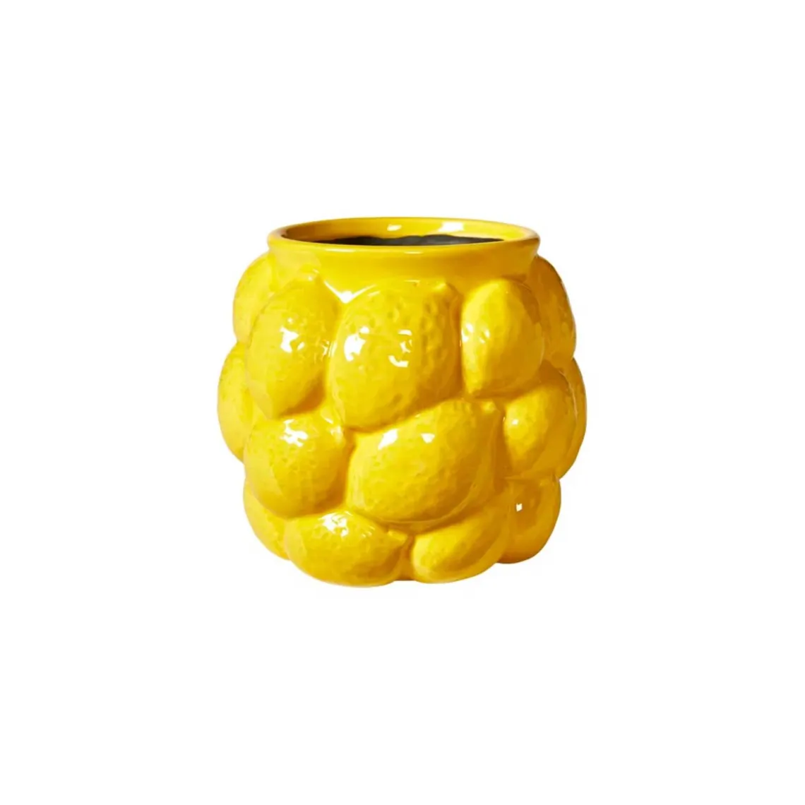 Keramikskjuler med citroner i frisk gul farve. Kommer med filt-dutter under. Kondens kan forekomme, så placer altid på beskyttet overflade. Mål: H14 x Ø16 cm
