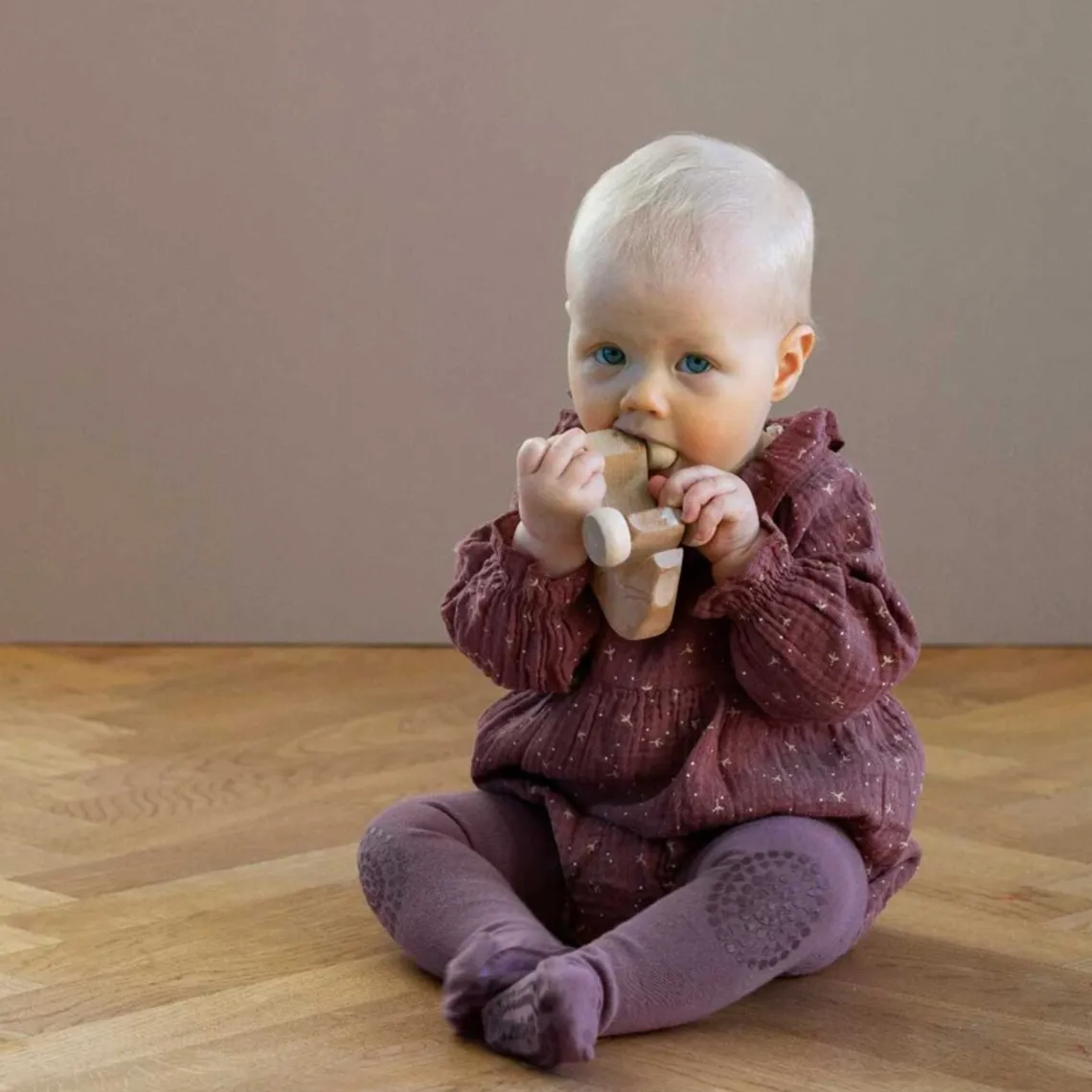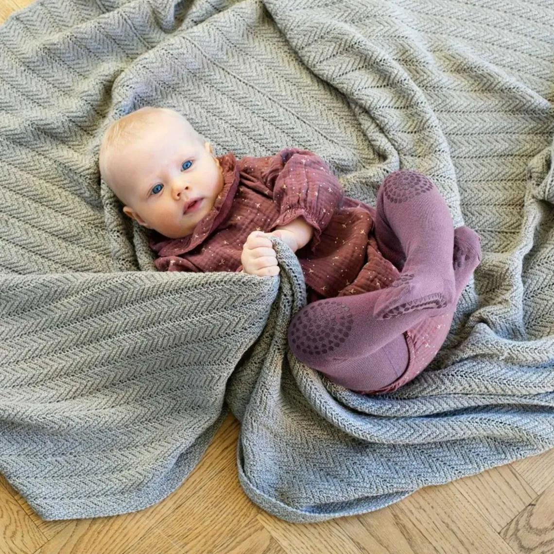Dansk design og OEKO-TEX® Standard 100 Certificeret Giv barnet en god start når det skal i gang med at kravle og tage sine første skridt. Strømpebukserne er lavet i blødt økologisk bomuldsstræk og har en bred ribkant, der garanterer god bevægelighed, og som føles behagelig på huden. De skridsikre såler samt dutterne på knæene og ovenpå tæerne gør strømpebukserne ekstra slidstærke og gør det samtidig muligt for barnet at kravle rundt uden at glide på glatte overflader. Stabiliteten på alle overflader styrker barnets motorik, balance og selvsikkerhed. De skridsikre dutter giver støtte både når barnet kravler, og forsøger at rejse sig og tage sine første skridt.