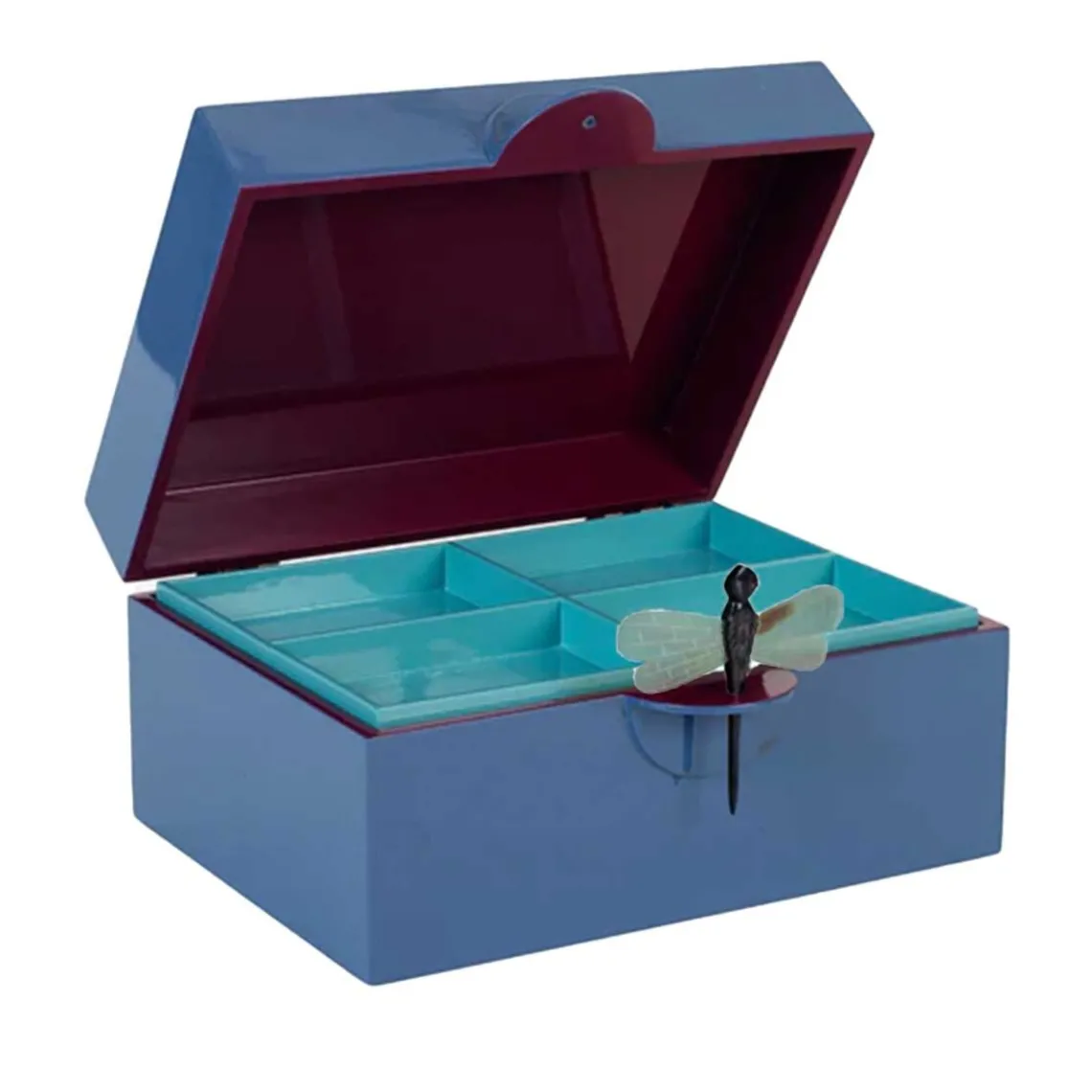 Indvendigt har skrinet et stort rum og en løs bakke med ruminddeling.