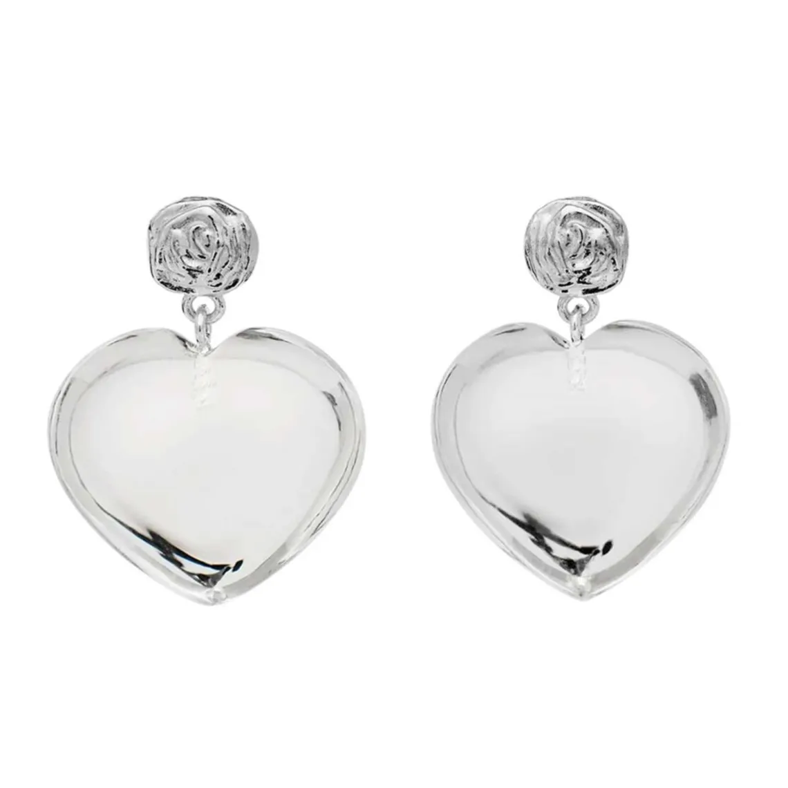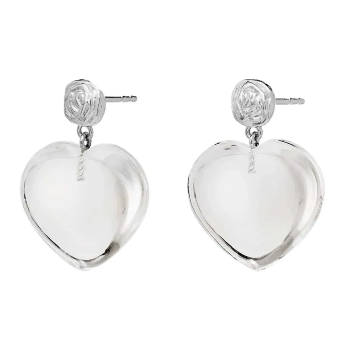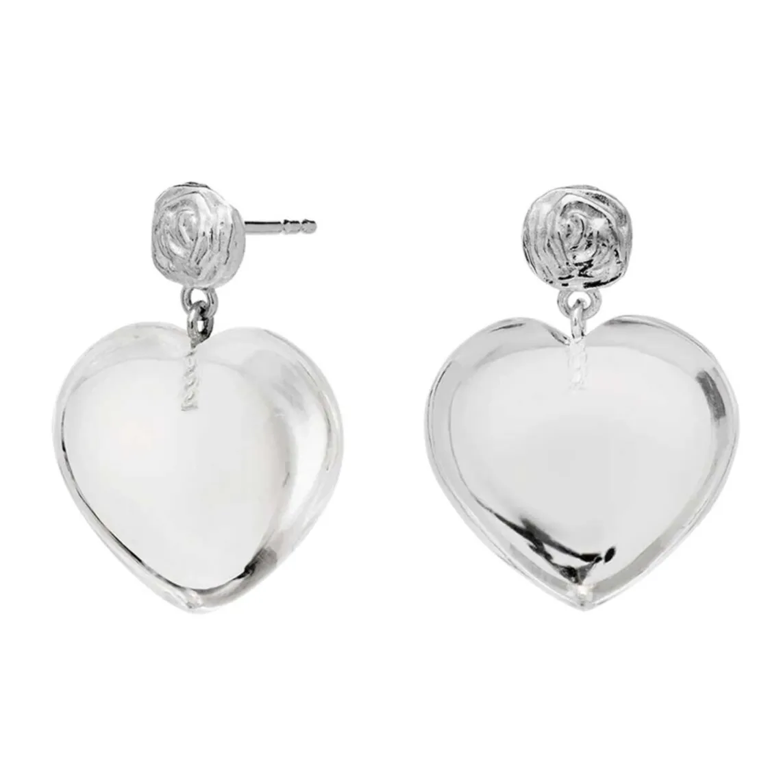 Lemona øreringe fra Maanesten. Svævende under en elegant rose fanger det hjerteformede krystalvedhæng på deres Lemona øreringe hver et blik, og udstråler kærlighed til livet selv.