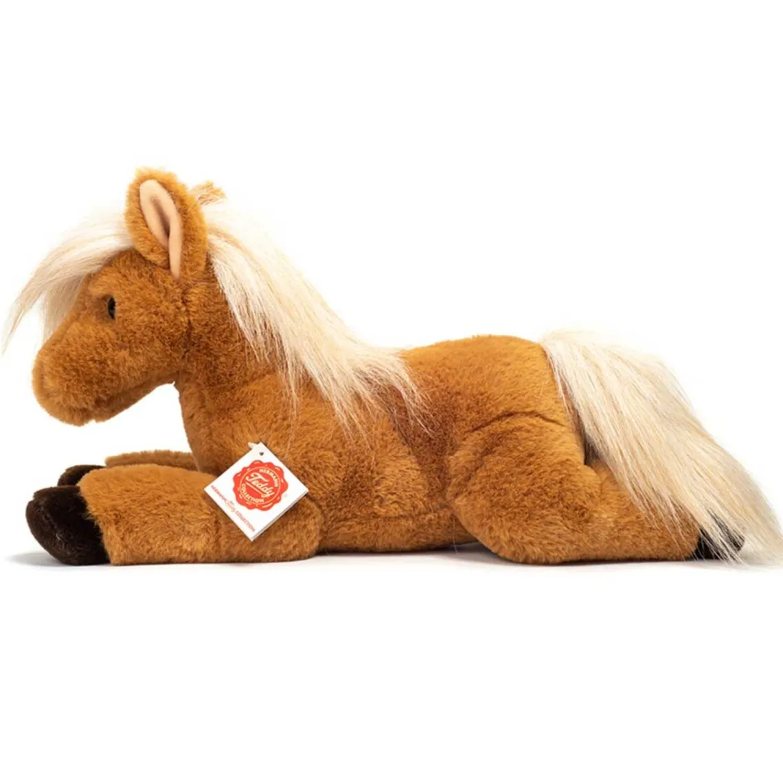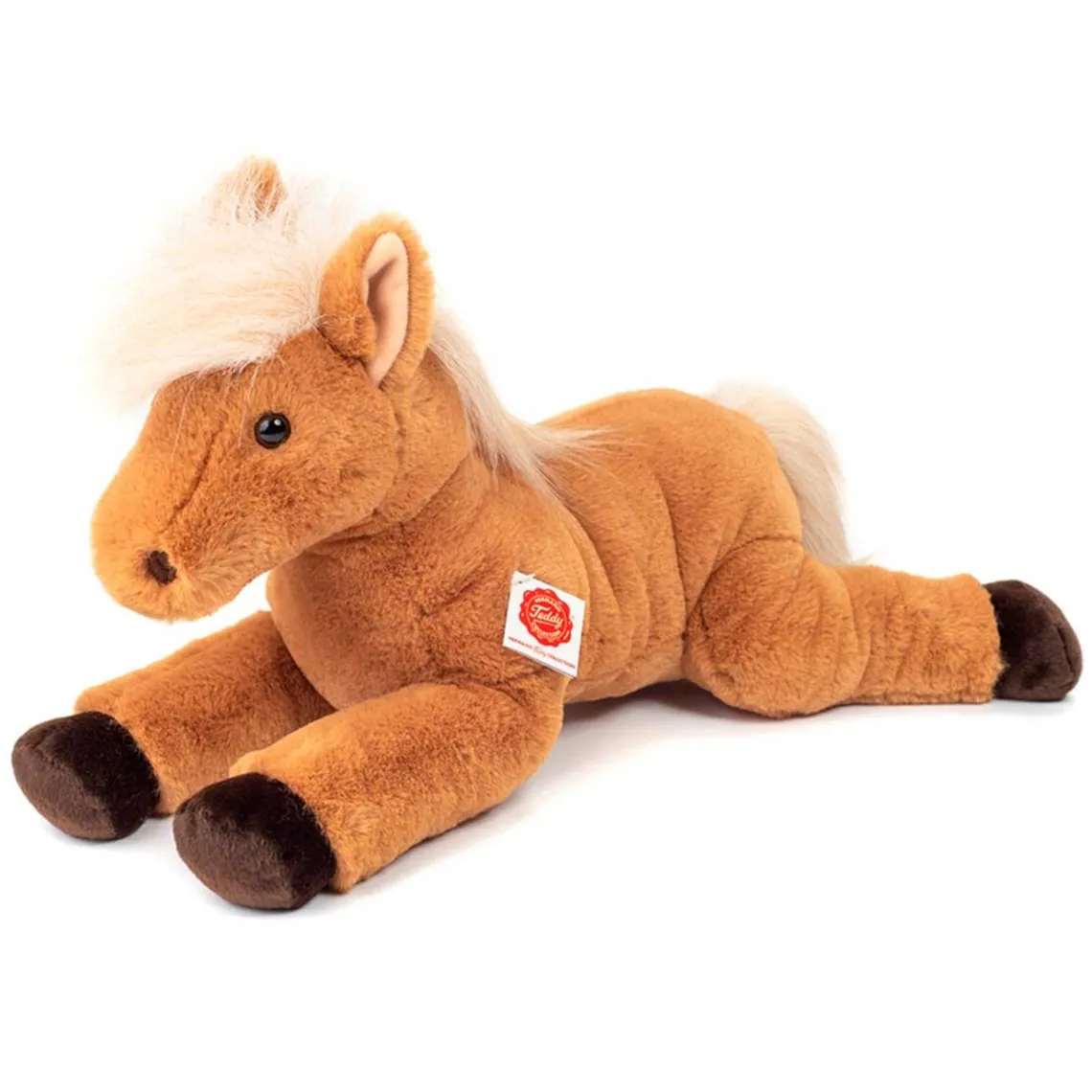 Denne bløde liggende hest er perfekt til kram og leg. Fremstillet i polyester, der sikrer både komfort og holdbarhed. Vaskeanvisning: Kan maskinvaskes ved 30°C på uldprogram. Tåler ikke tørretumbler. Mål: 18 x 13 x 34 cm
