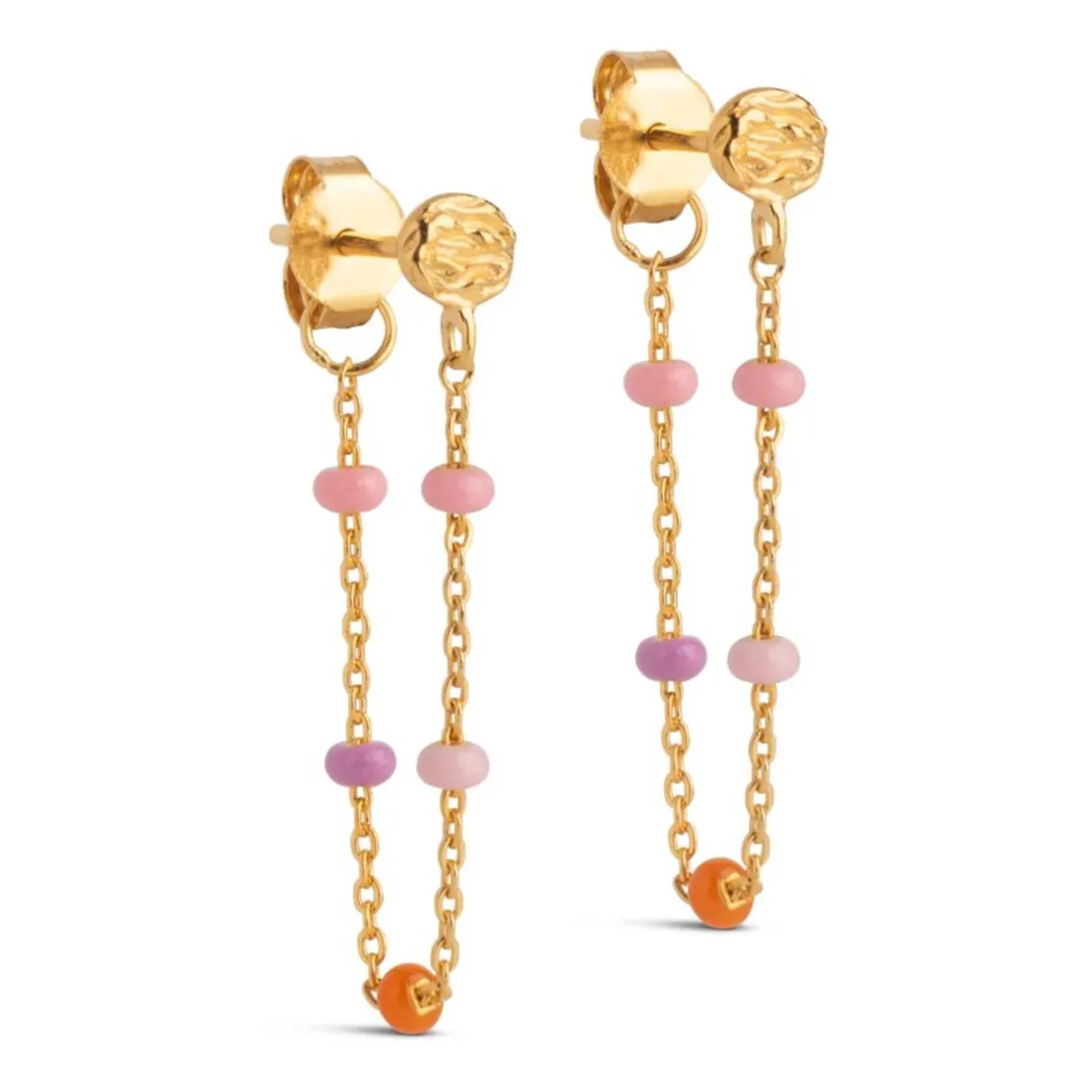 Lola øreringene fra Enamel består af en fin kæde med små emaljer i smukke farver. Øreringene giver en fin farverig detalje og kan perfekt kombineres med andreøreringe – på samme måde som de kan bæres sammen med Lola halskæden eller Lola armbåndet fra Enamel for at skabe et gennemført look.