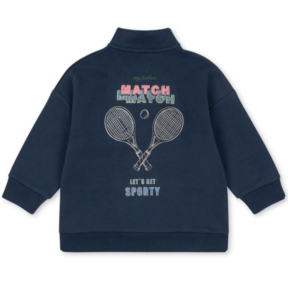 Blød sweatshirt i klassisk half-zip design med høj krave og lynlåslukning. Materiale: 90% økologisk bomuld, 10% polyester