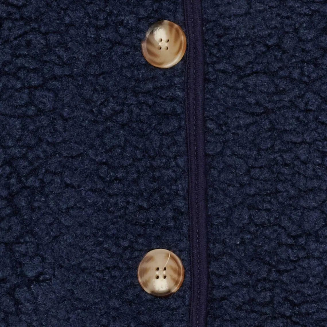 Her får du en flot, ensfarvet jakke. Denne jakke er en lækker teddy jakke. Denne jakke lukkes med knapper og med lommer på fronten. Materiale: 100% polyester