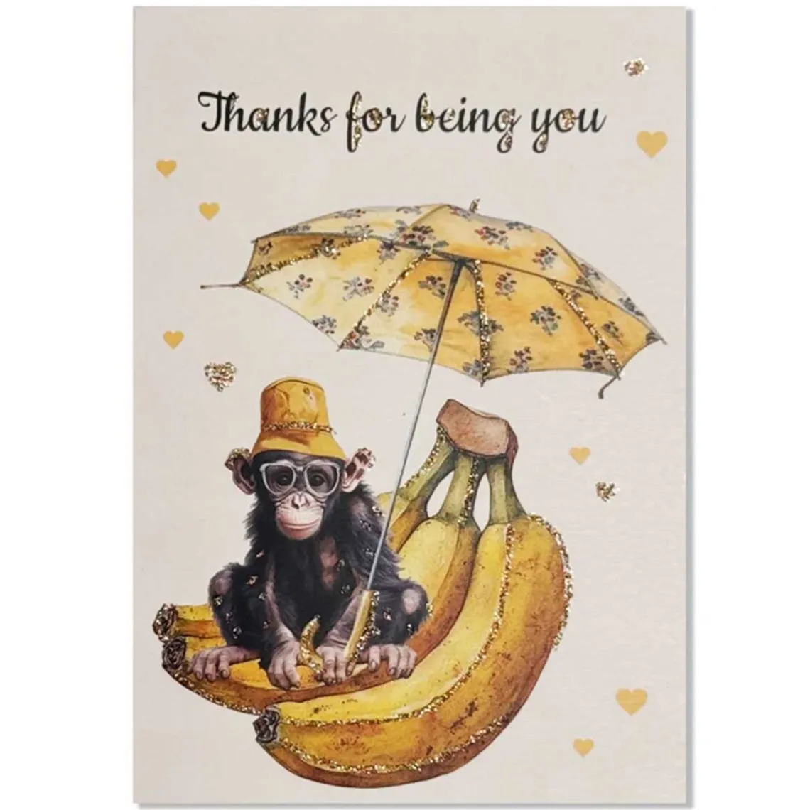 Alle kort er i kraftig og tyk papirs kvalitet og er pyntet med glitter og glimmer. Til hvert enkelt kort medfølger der en mokka farvet kuvert med selvklæbende lukning. Kortet måler 9×13 cm og er dobbeltsidet med har blanke sider indeni til at skrive en personlig hilsen.