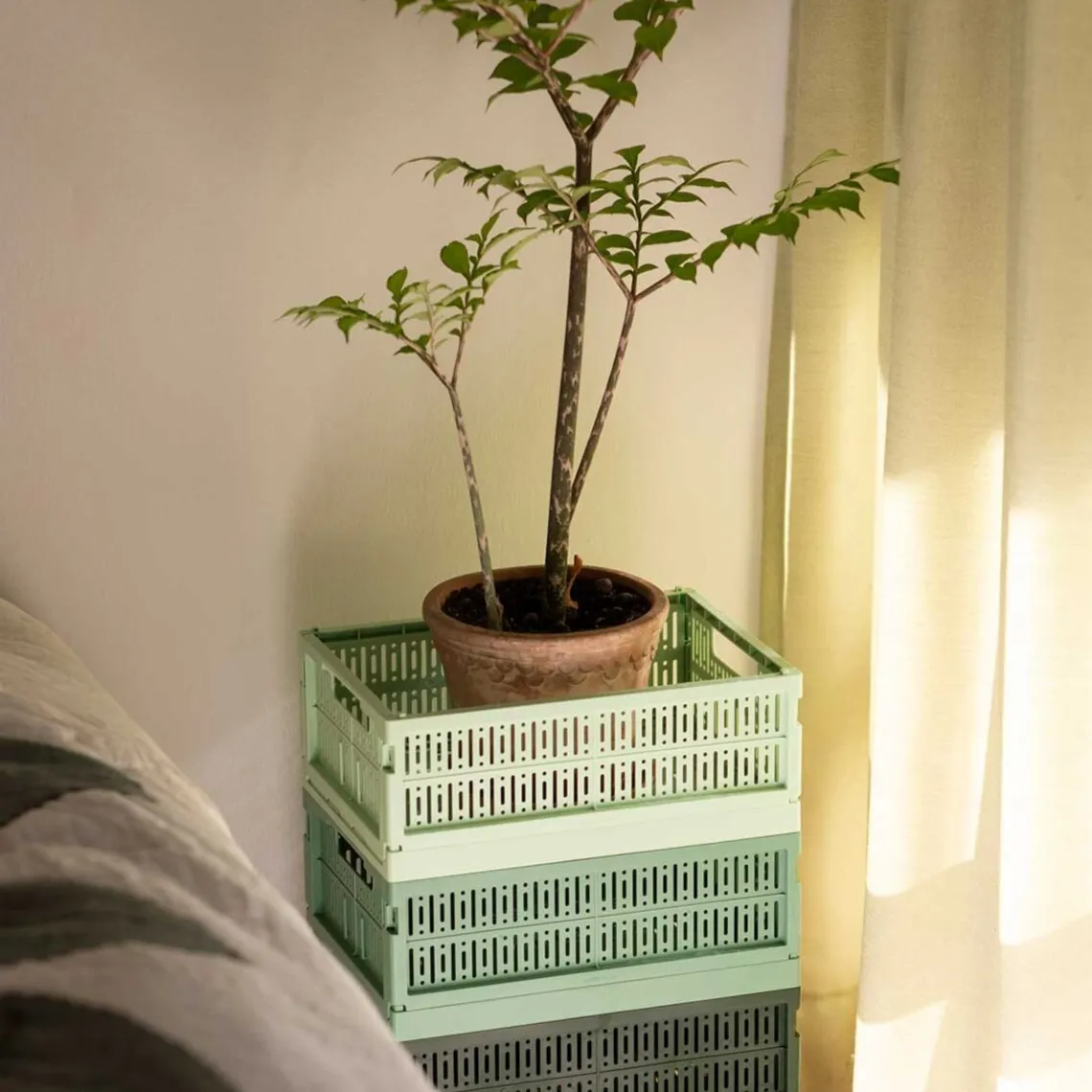 Made Crate maxi foldekasse. Foldekasserne kommer i mange forskellige farver, så du nemt kan lave en personlig indretning med dem i dit hjem.