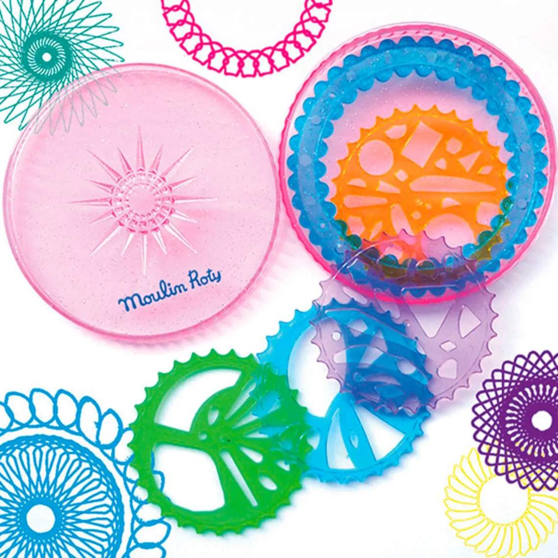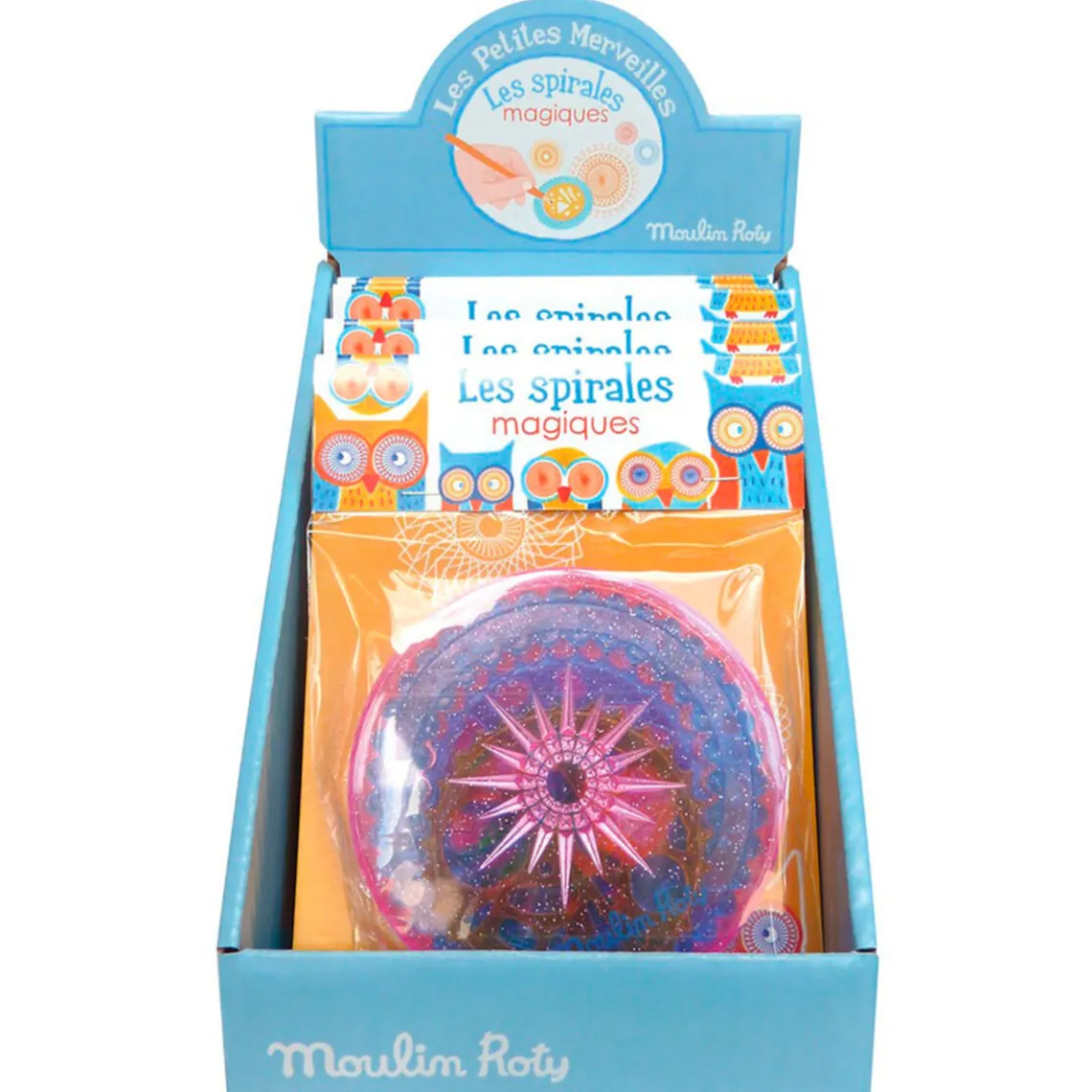 Magisk tegnespiral fra Moulin Roty. Den praktiske runde plastikæske gemmer på sjove og udfordrende tegnespiraler. Man kan blandt andet lære og øve sig på at tegne mandala mønstre og farvelægge dem derefter. Æsken indeholder 4 forskellige tegnespiraler som gør mulighederne for mønstre uendelige. Den magiske tegnespiral er lige til at tage med sig på ferie, i skole eller hjem til bedsteforældrene. Velegner sig til børn fra 3 år. CE-mærket.