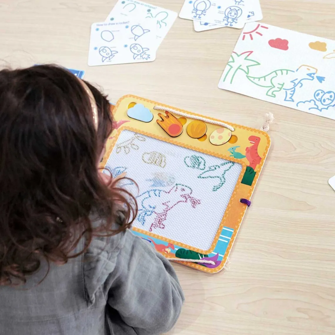 Indhold: 1 x magnetisk tegnetavle, 1 x magnetisk pen, skabelon, 10 x trin-for-trin kort, 4 x magnetstempler. Produkt: 3,7 x 29,7 x 34,3 cm