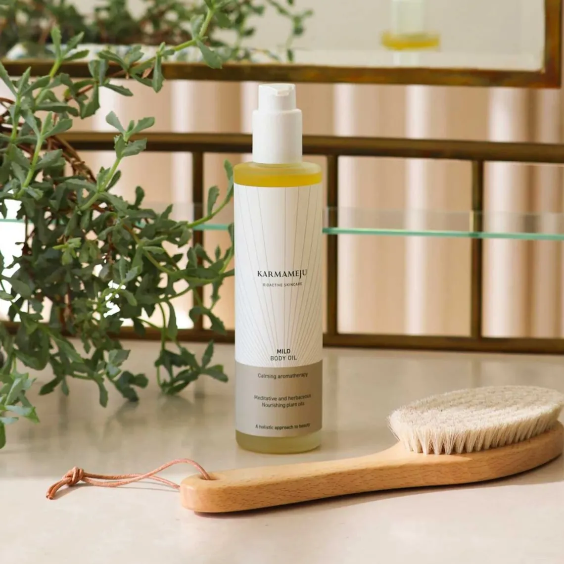 Karmamejus body oils er 100% naturlige og planteoliebaseret. Indeholder ikke mineralske olier eller petrolatum.