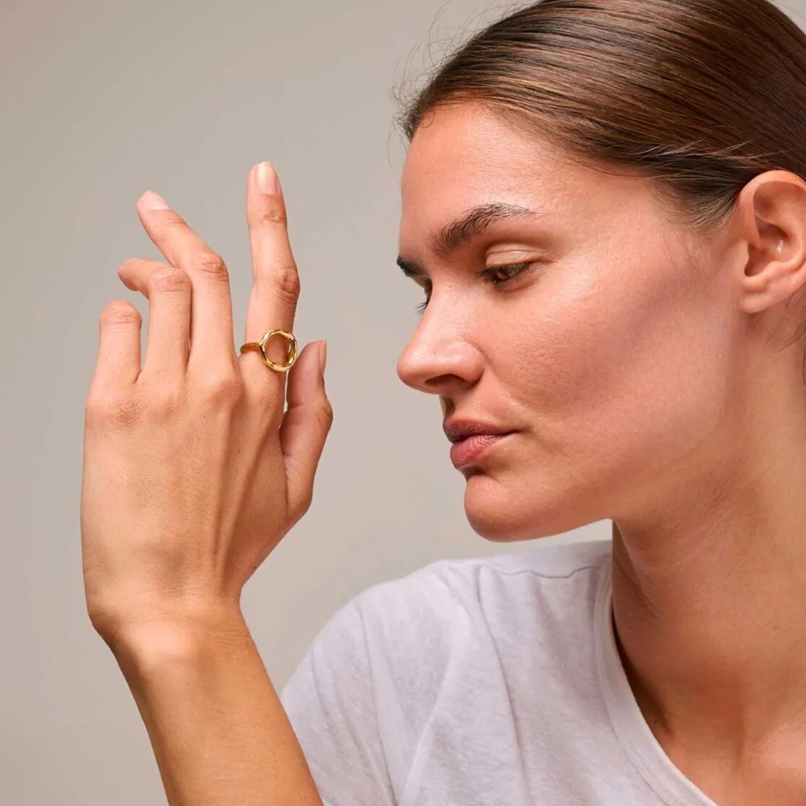 Ringen er lavet af 925 sterlingsølv og belagt med 18 karat guld.