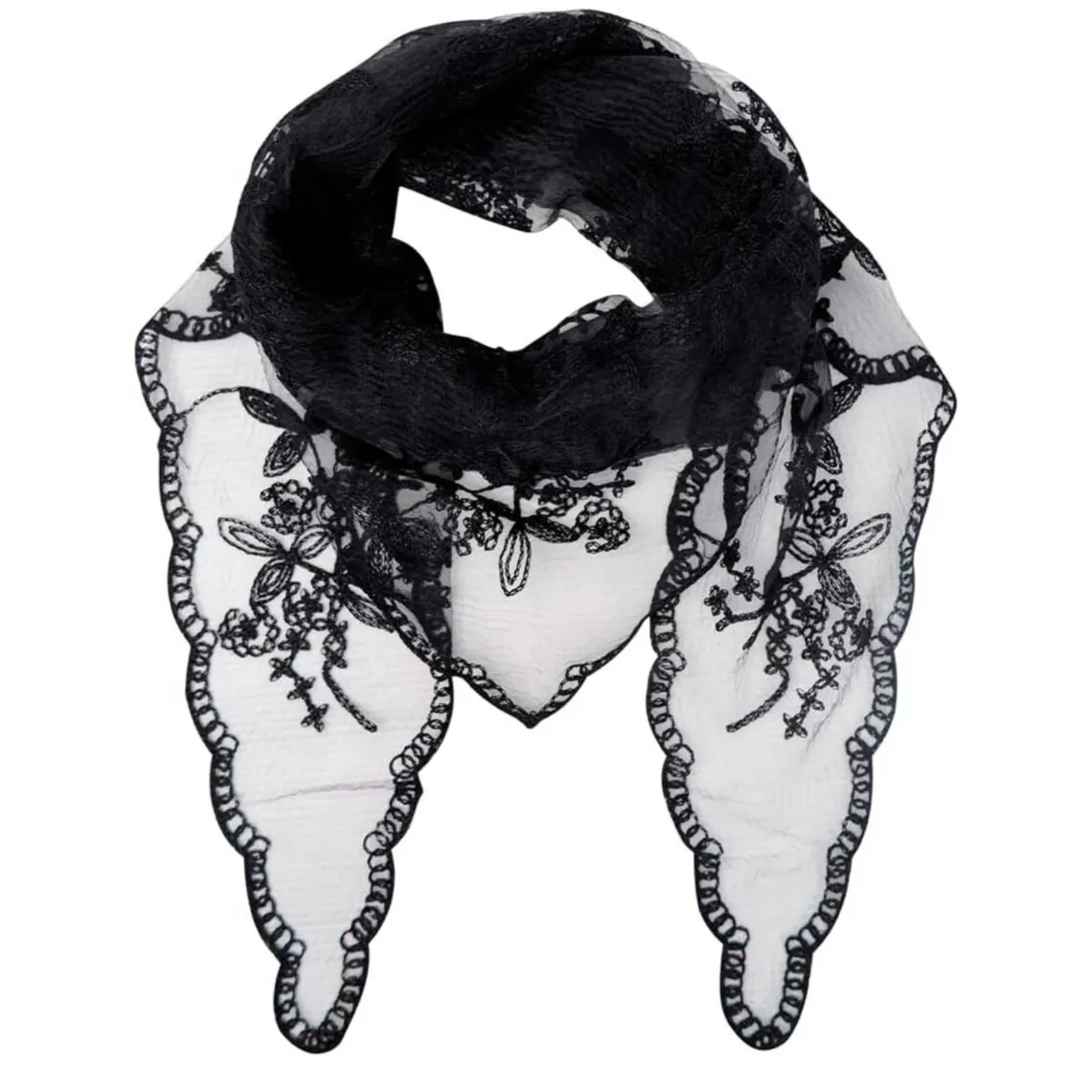 MIRIANA TRIANGLE LACE SCARF | BLACK
