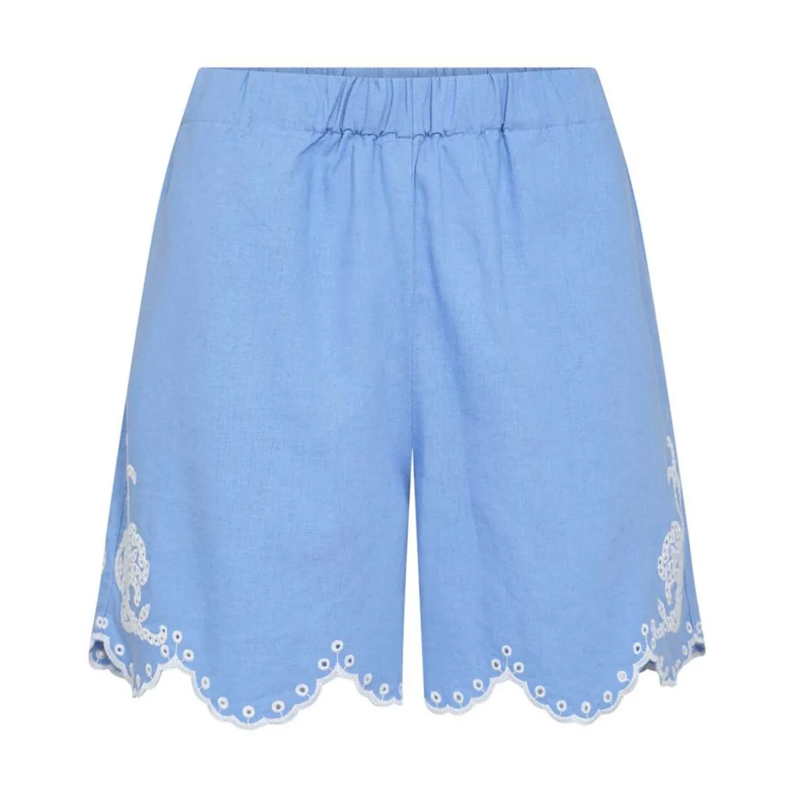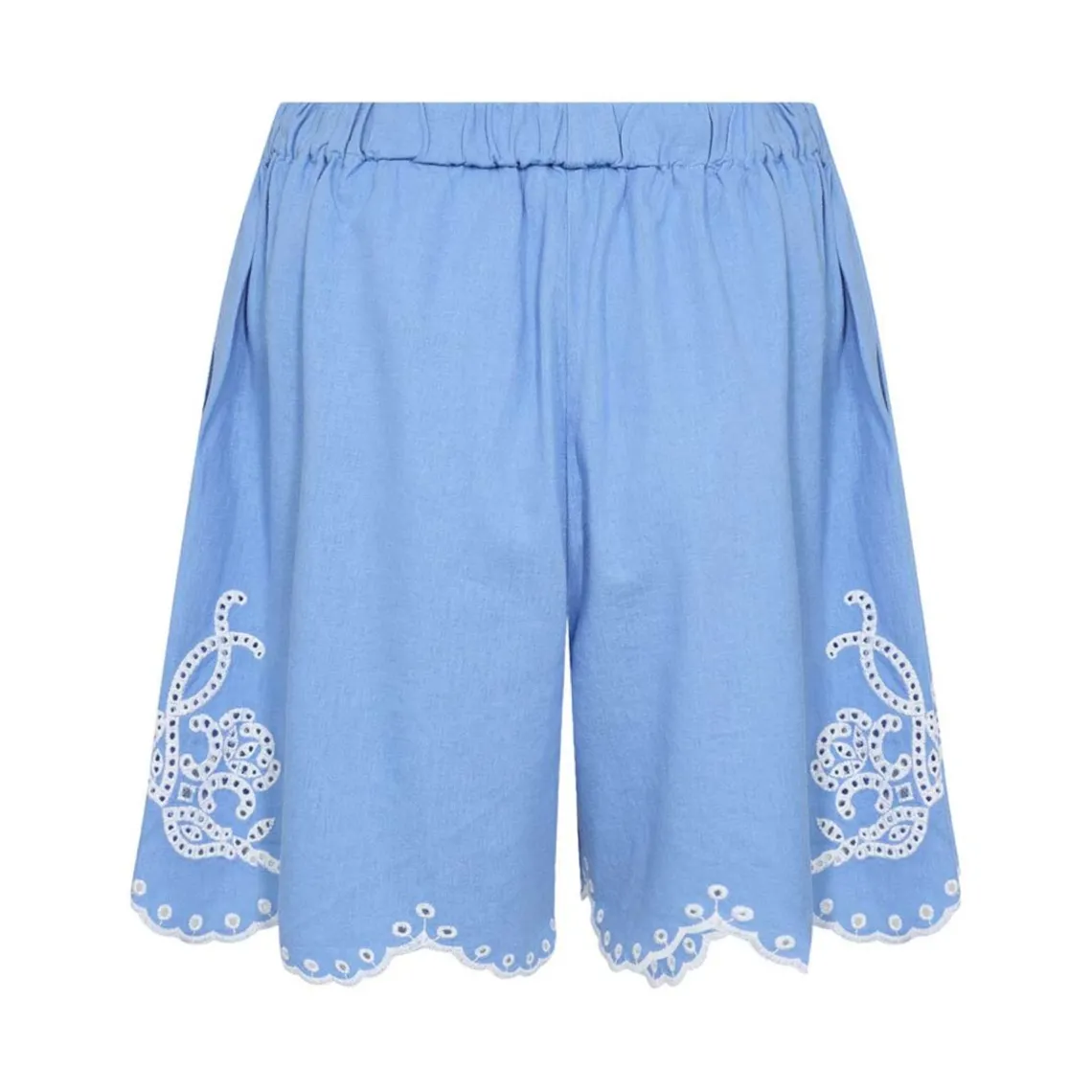 NAJA 46 shorts kombinerer komfort og stil i en blød blanding af 55 % hør og 45 % viskose. Shortsene har en elastisk linning og en løs, afslappet pasform, der giver bevægelsesfrihed hele dagen. Små broderede detaljer langs sømmene tilfører et elegant touch. Perfekte til både casual outfits og mere sofistikerede looks, især i selskab med en tætsiddende t-shirt og et par sneakers. Materiale: 55% hør, 45% viskose